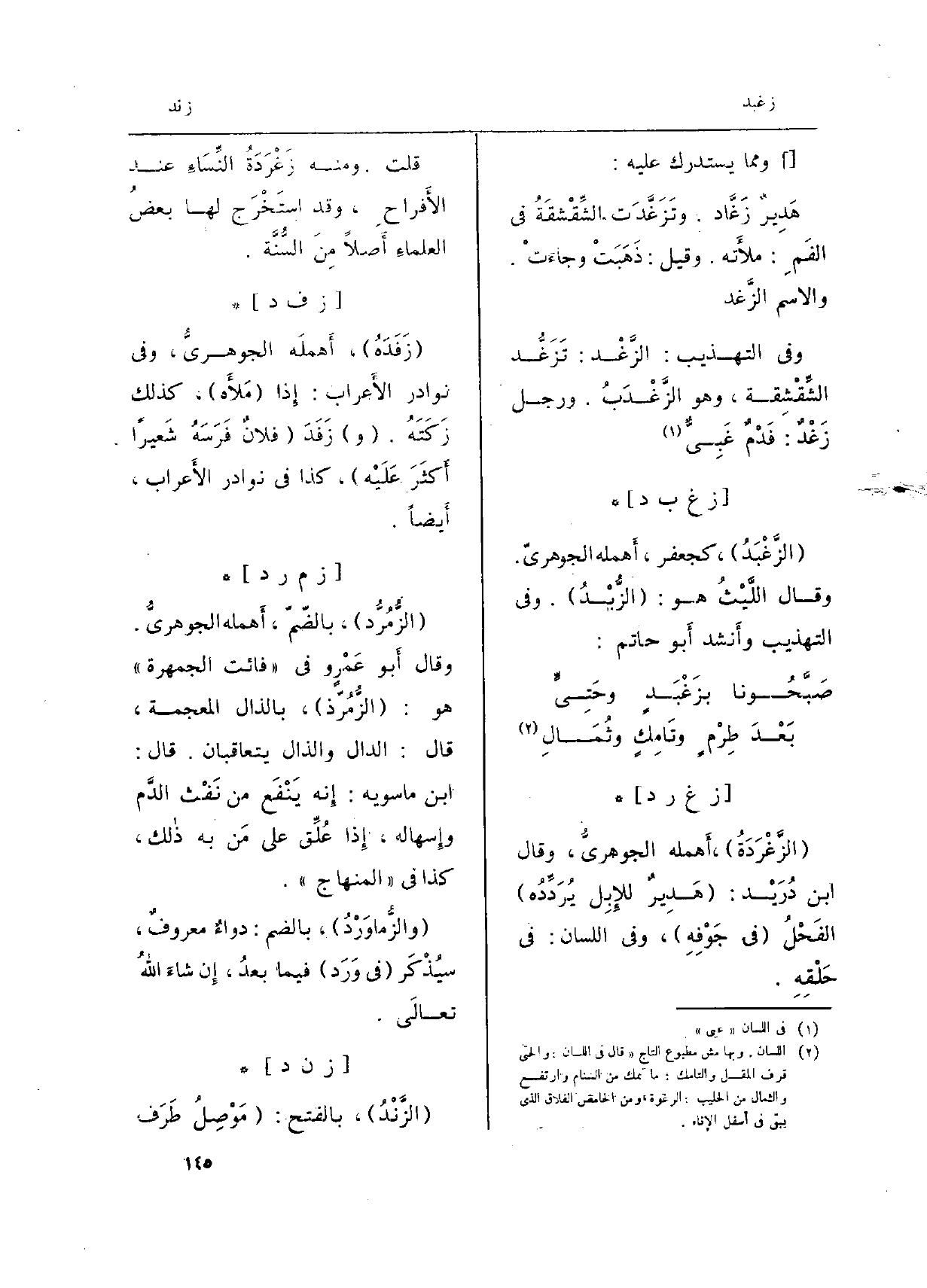 وَفِي التَّهْذِيب: الزَّغْد: تَزَغُّد الشِّقْشِقة، وَهُوَ الزَّغْدَبُ. وَرجل زَغْدٌ: فَدْمٌ غَبِيٌّ.