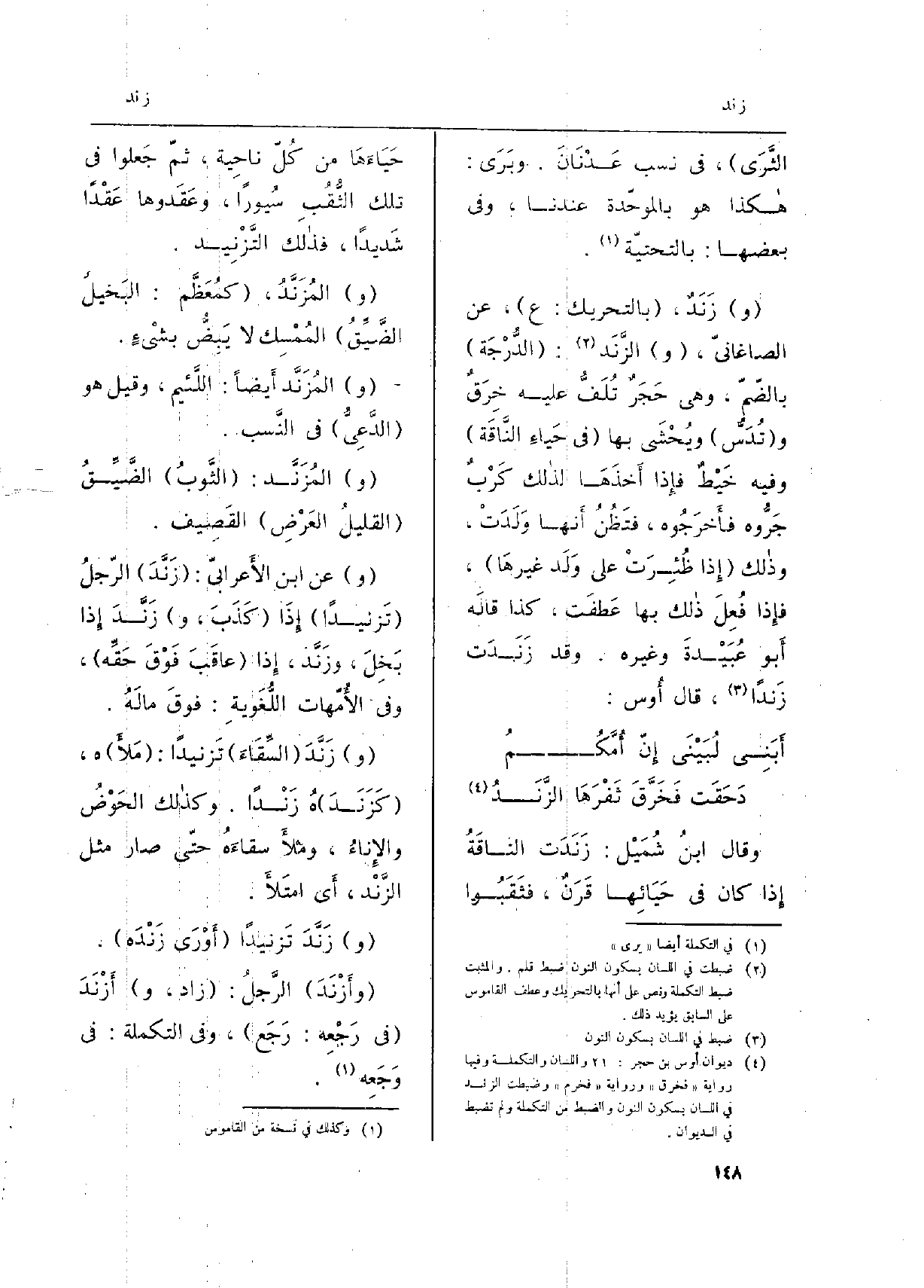 (و) عَن ابْن الأَعرابيّ: (زَنَّدَ) الرّجلُ (تَزنيداً) إِذَ (كَذَبَ، و) زَنَّدَ إِذا بَخِلَ، وزَنَّد، إِذا) عاقَبَ فَوْقَ حَقِّه) ، وَفِي الأُمّهات اللُّغَويةِ: فوقَ مالَهُ.