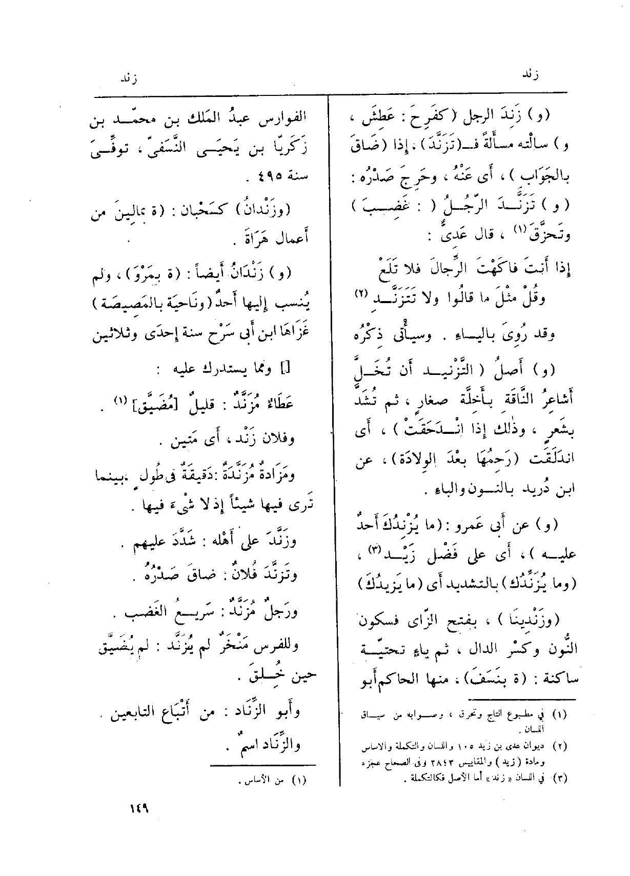 (و) عَن أَبي عَمرو: (مَا يُزْنِدُكَ أَحدٌ عَلَيْهِ) ، أَي على فَضْل زَيْد، (وَمَا يُزَنِّدُك) بِالتَّشْدِيدِ أَي (مَا يَزيدُكَ) .