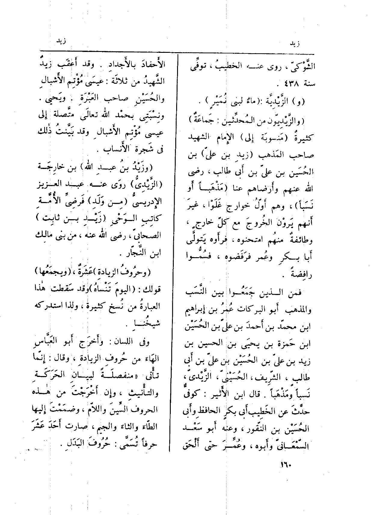 (} والزَّيْدِيّون من المُحدِّثين: جَماعَةٌ) كثيرةٌ (مَنسوبَة إِلى) الإِمام الشَّهِيد صَاحب المَذهب (زيدِ بن عليّ) بن الحُسَين بن عليّ بن أَبي طَالب، رَضِي الله عَنْهُم وأَرضاهم عَنَّا (مَذْهَباً أَو نَسَباً) ، وهم أَوْلُ خوارج غَلَوْا غيرَ أَنهم يَروْن الخُروجَ مَعَ كلّ خارجٍ، وطائفةٌ منهُم امتحنوه، فرأَوه يَتولَّى أَبا بكرِ وعُمر فرَفَضوه، فسُمُّوا رافِضةً.