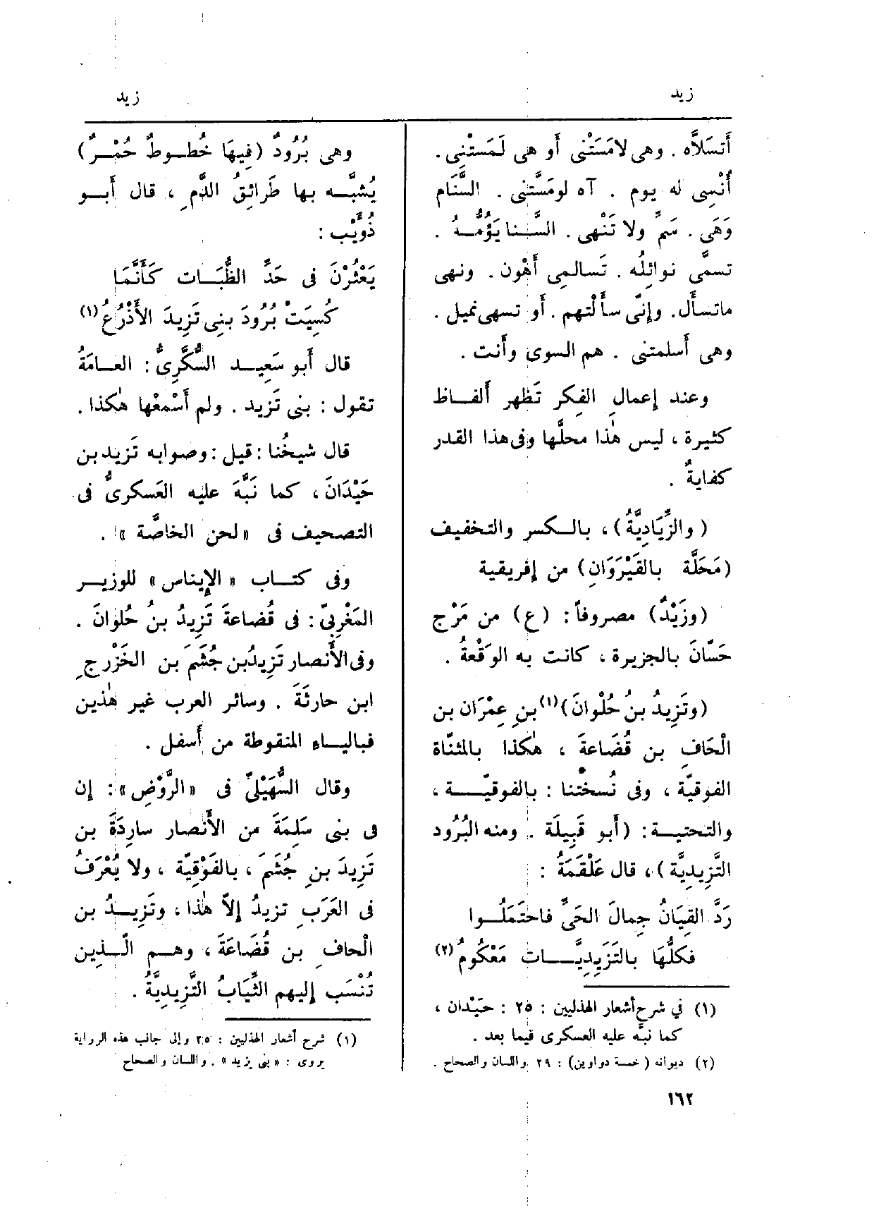 وَقَالَ السّهَيْليّ فِي (الرَّوْضه) ؛ إِن فِي بني سَلِمَةَ من الأَنصار سارِدَةَ بن تَزِيدَ بنِ جُشَمَ، بالفَوْقِيّة، وَلَا يُعْرَفُ فِي العَرَبِ تزيدُ إِلّا هاذا، وتَزِيدُ بن الْحافِ بن قُضَاعَةَ، وهم الّذِين تُنْسَب إِليهم الثِّيَابُ! التَّزِيدِيَّةُ.