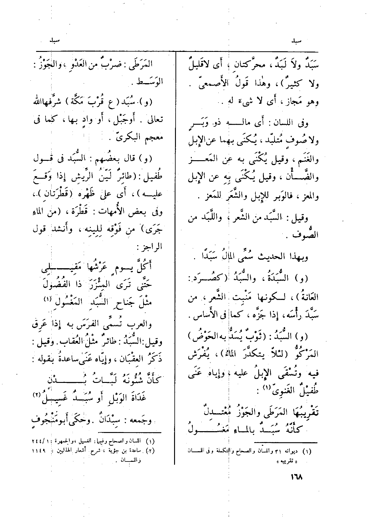 (و) قَالَ بعضُهم: السُّبَد فِي قَول طُفيل: (طائِرٌ لَيّنُ الرِّيش إِذا وَقعَ عَلَيْهِ) ، أَي على ظَهْره (قَطْرَتانِ) ، وَفِي بعض الأُمهات: قَطْرَة، (من الماءِ جَرَى) من فَوْثقِهِ لِلِينِه، وأَنشد قَول الراجز: