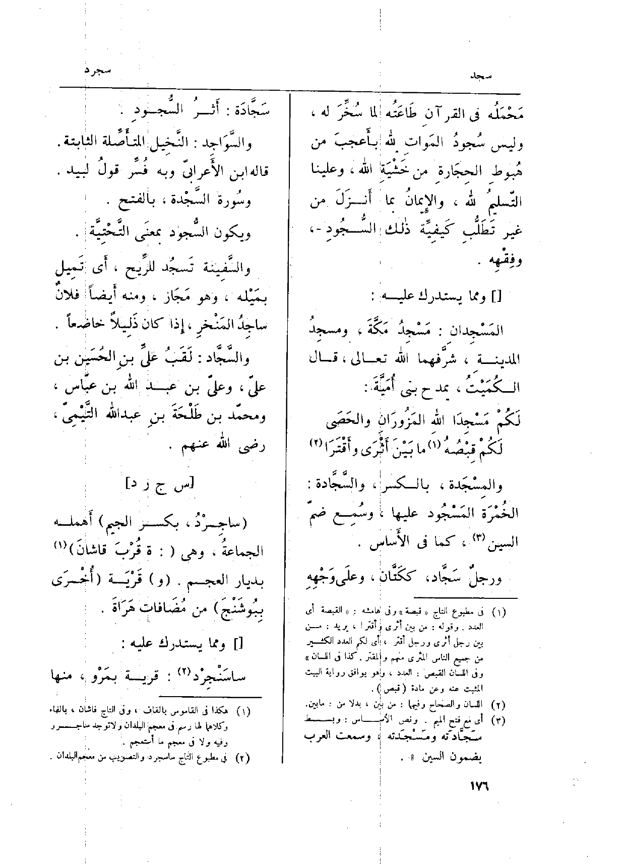 والسَّجَّاد: لَقَبُ عليِّ بنِ الحُسَين بن عليّ، وعليّ بن عبد الله بن عبّاس، ومحمّد بن طَلْحَةَ بنِ عبد الله التَّيْمِيّ، رَضِي الله عَنْهُم.