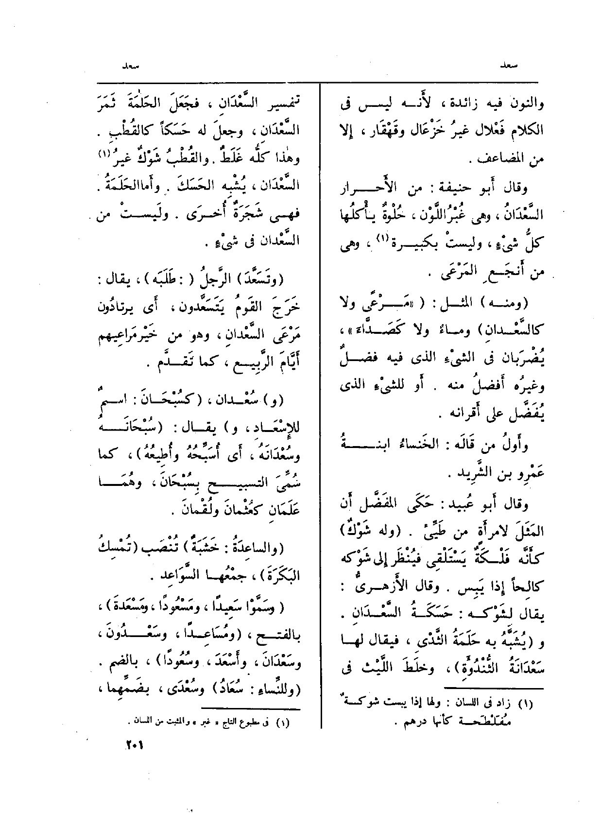 وَقَالَ أَبو حنيفَة: من الأَحرار السَّعْدَانُ، وَهِي غُبْرُ اللَّوْن، حُلْوةٌ يأْكلُها كلُّ شيْءٍ، وليستْ بكبيرة، وَهِي من أَنجَعِ المَرْعَى.