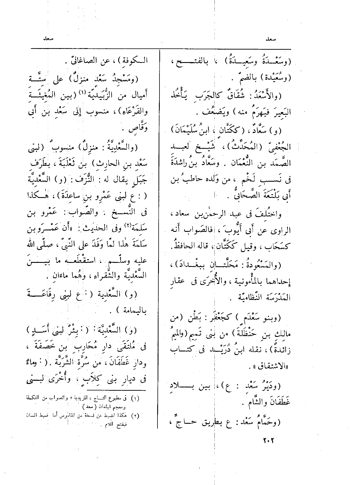 (و) سَعَّادٌ، (ككَتَّانٍ، ابنُ سُلَيْمَانَ) الجُعْفِيّ (المُحَدِّثُ) ، شَيْخ لعبد لصَّمَد بن النعْمَان. وسَعَّادُ بنُ راشدَةَ فِي نَسبِ لَخْم، من وَلده حاطبُ بن أَبي بَلْتَعَةَ الصَّحَابيُّ.