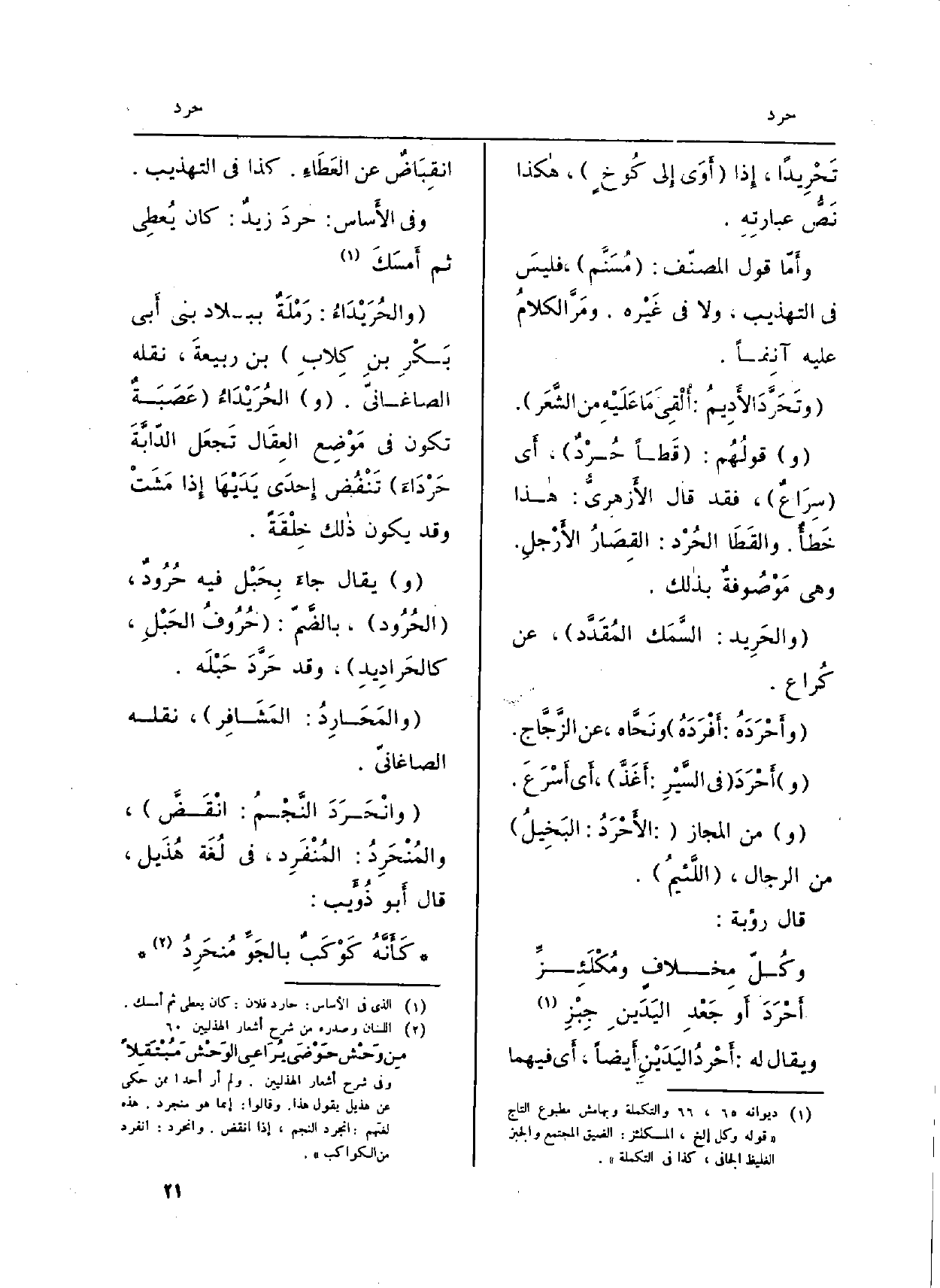 (و) يُقَال جاءَ بِحَبْل فِيهِ حُرُودٌ، (الحُرُود) ، بالضَّمّ: (حُرُوفُ الحَبْلِ، كالحَرادِيدِ) ، وَقد حَرَّدَ حَبْلَه.
