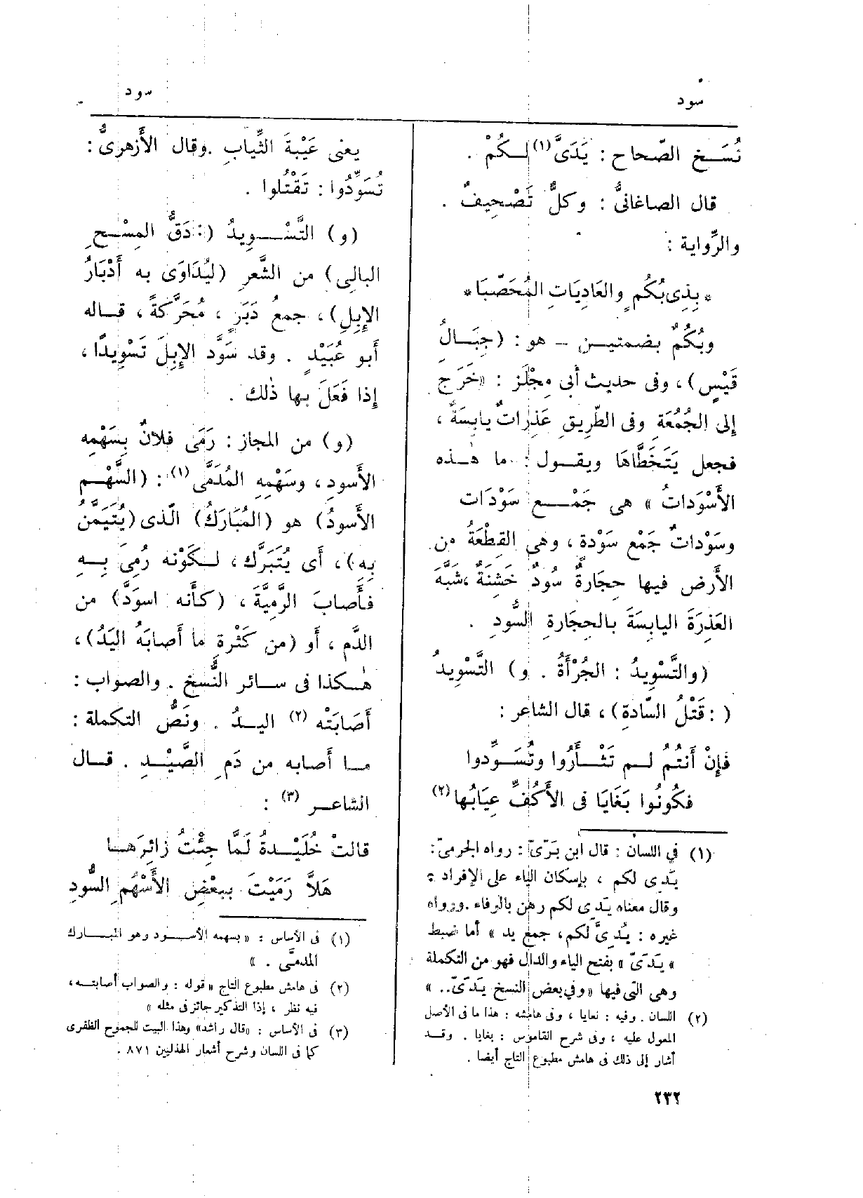 (} والتَّسْوِيدُ: الجُرْأَةُ. و) {التَّسْوِيدُ: (قَتْلُ السّادةِ) ، قَالَ الشَّاعِر: