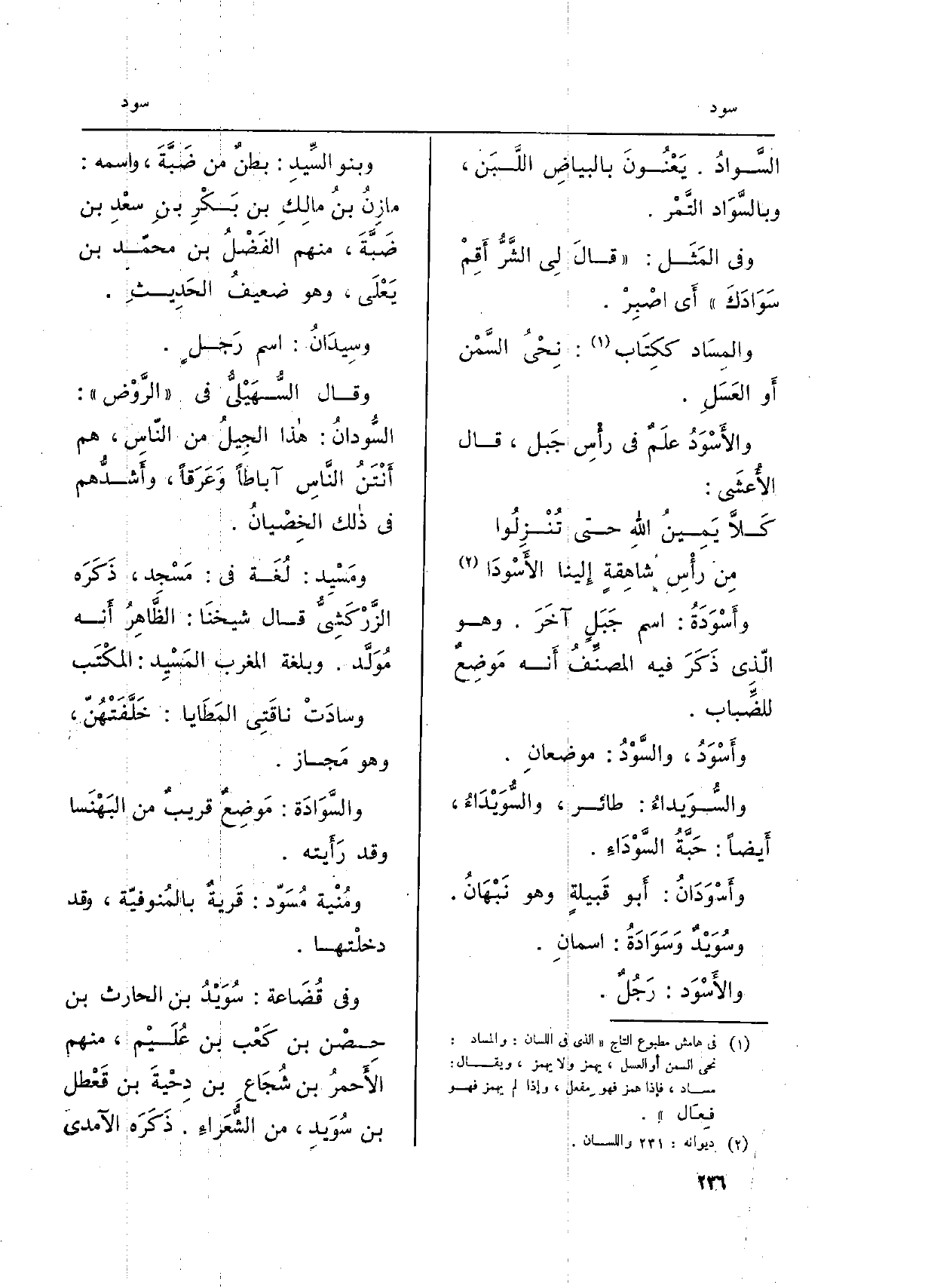 } والسَّوَادَة: مَوضِعٌ قريبٌ من البَهْنَسا وَقد رَأَيته ومُنْية {مُسَوّد: قَرية بالمُنوفيّة، وَقد دخلْتها.