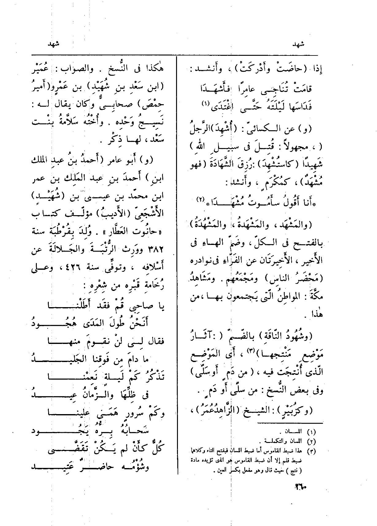 (و) عَن السكائيّ: (أُشْهِدَ) الرَّجلُ، (مَجْهُولا: قُتِلَ فِي سبيلِ اللهِ) شَهيداً (كاستُشْهِيدَ) : رُزِق الشَّهَادَةَ (فَهُوَ مُشْهَدٌ) ، كمُكْرمٍ، وأَنشد: