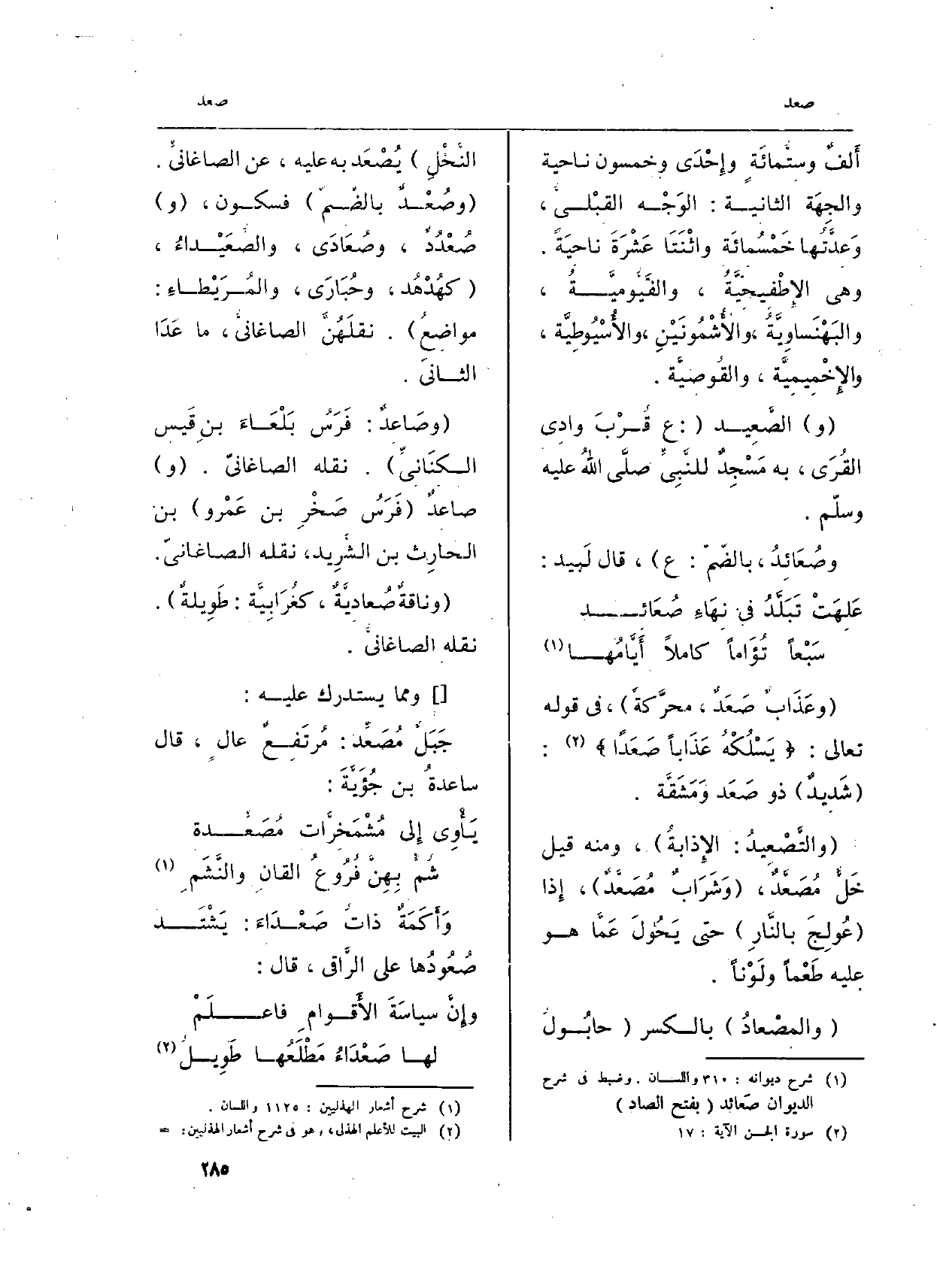 وصُعَائِدُ، بالضّمّ: ع) ، قَالَ لَبيد: