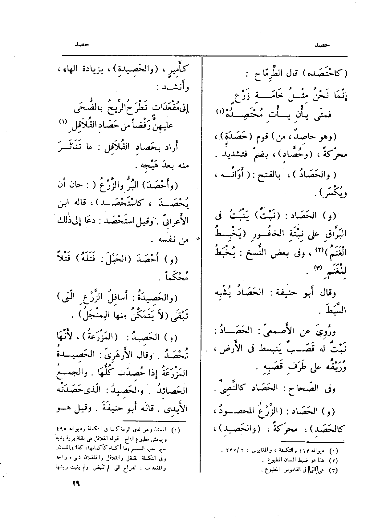 (كاحْتَصَده) قَالَ الطِّرِمّاح: