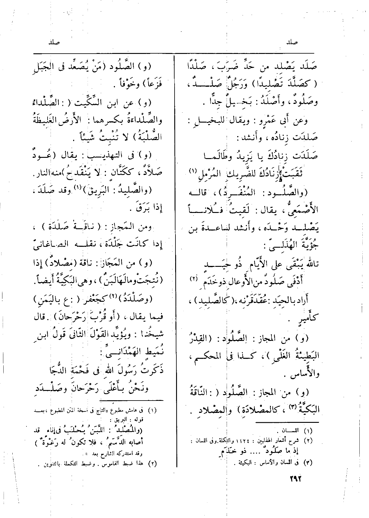 (و) من الْمجَاز: الصَّلُود: (النّاقَةُ البَكيَّةُ، كالمصْلادَةِ) والمِصْلادِ.