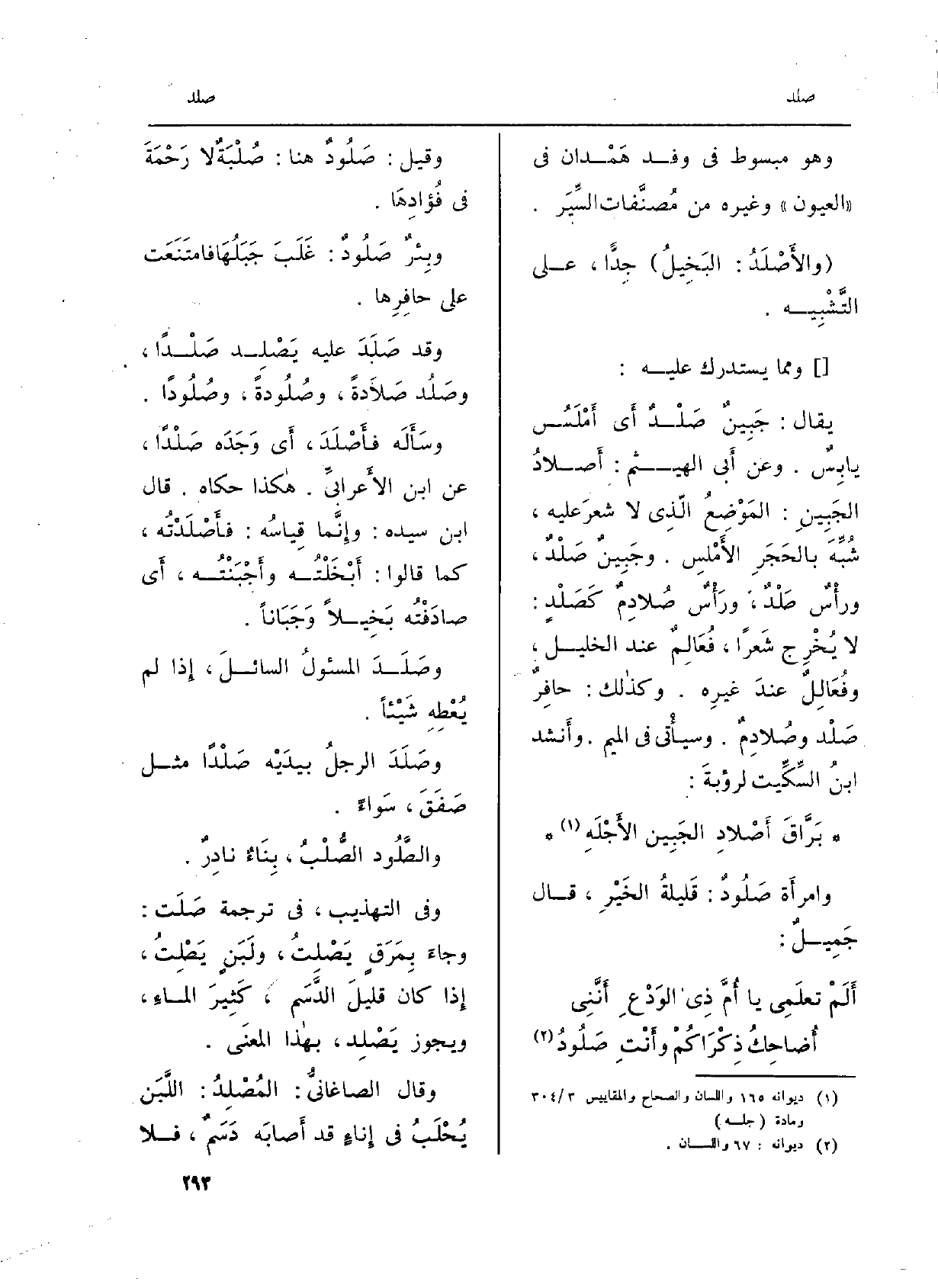 وامرأَة صَلُودٌ: قَليلةُ الخَيْرِ، قَالَ جَمِيلٌ: