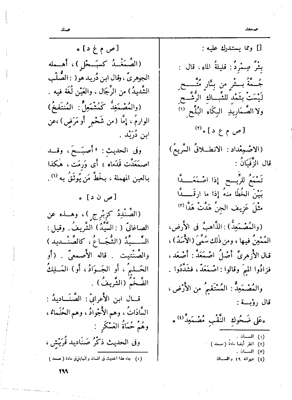 وَفِي الحَدِيث: (أَصبَحَ، وَقد اصمَعَدَّت قَدَماه) أَي وَرِمَت، هاكذا بِالْعينِ الْمُهْملَة، بخَطِّ مَن يُوثَقُ بِهِ.
