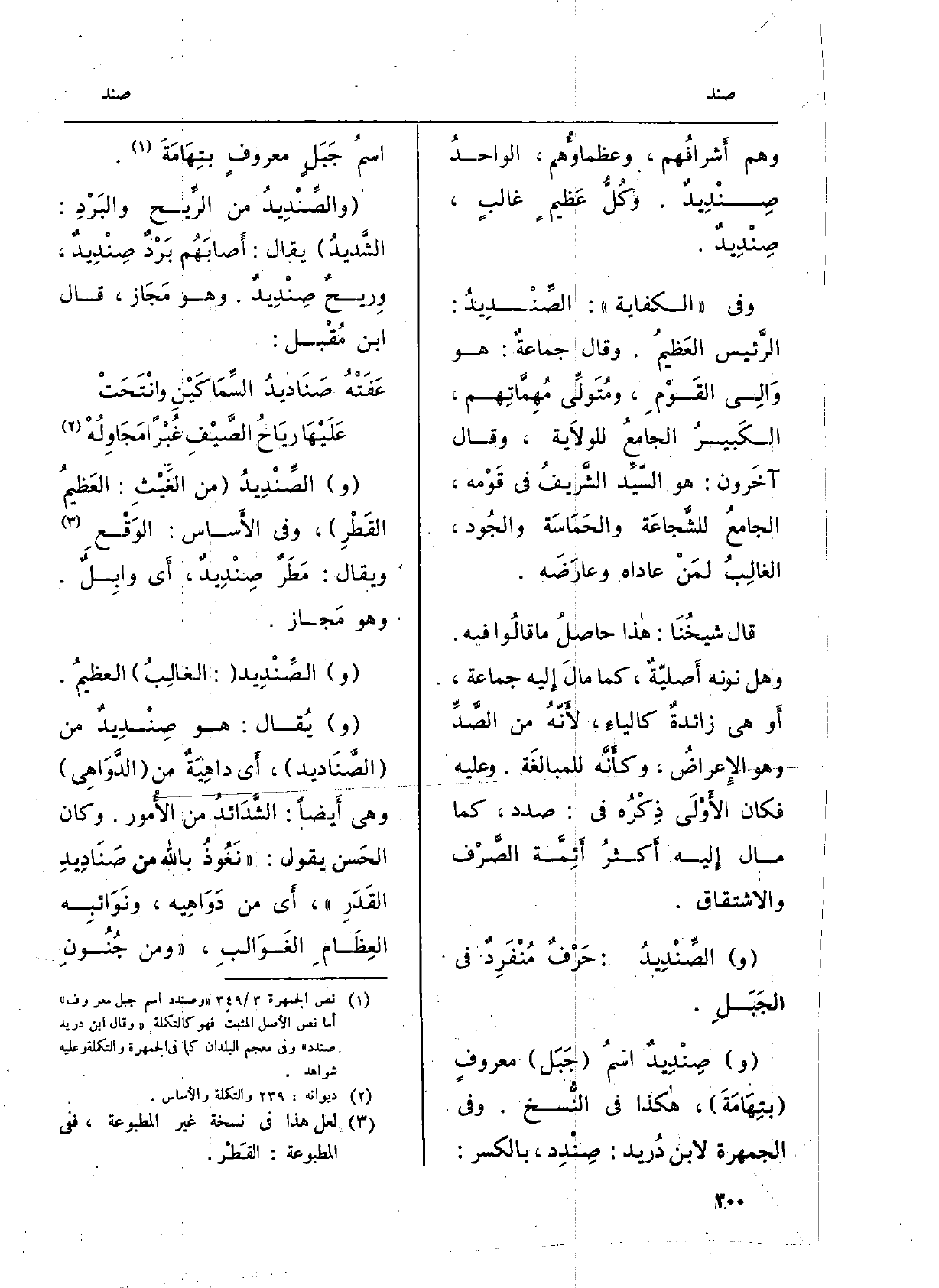(و) صِنْدِيدٌ اسمُ (جَبَل) معروفٍ (بتِهَامَةَ) ، هاكذا فِي النُّسخ. وَفِي الجمهرة لِابْنِ دُريد: صِنْدِد، بِالْكَسْرِ: اسمُ جَبَلٍ معروفٍ بتِهَامَةَ.