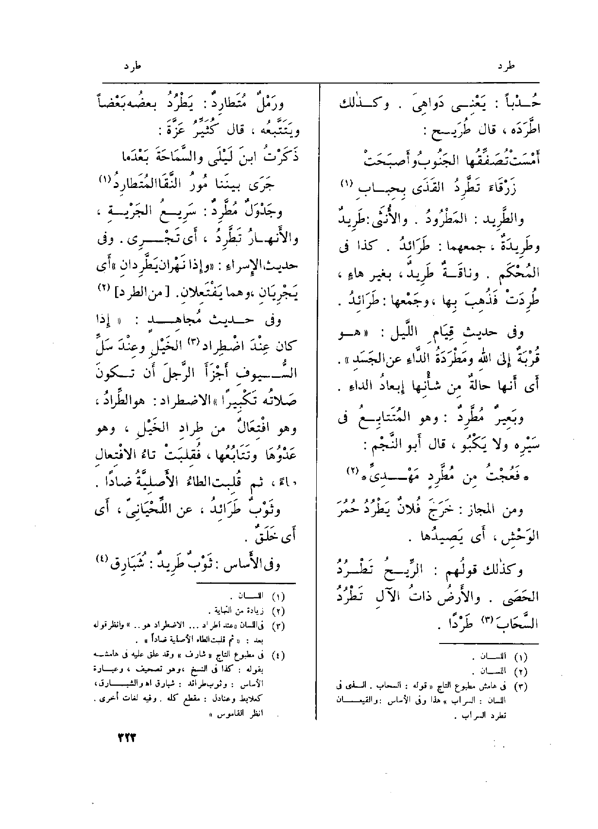 ورَمْلٌ مُتَطارِدٌ: يَطْرُدُ بعضُه بَعْضاً ويَتَبَّعُه، قَالَ كُثَيِّرُ عَزَّةَ: