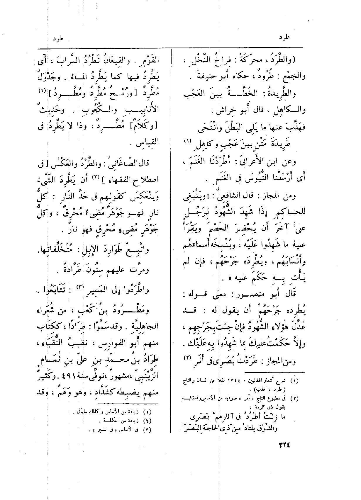 فهَذَّبَ عَنْهَا مَا يَلِي البَطْنَ وانْتَحَى طَرِيدَةَ مَتْنٍ بينَ عَجْبٍ وكاهِلِ وَعَن ابْن الأَعرابيّ: أَطْرَدنَا الغَنَمَ، أَي أَرْسَلْنا التُّيُوسَ فِي الغَنَمِ.