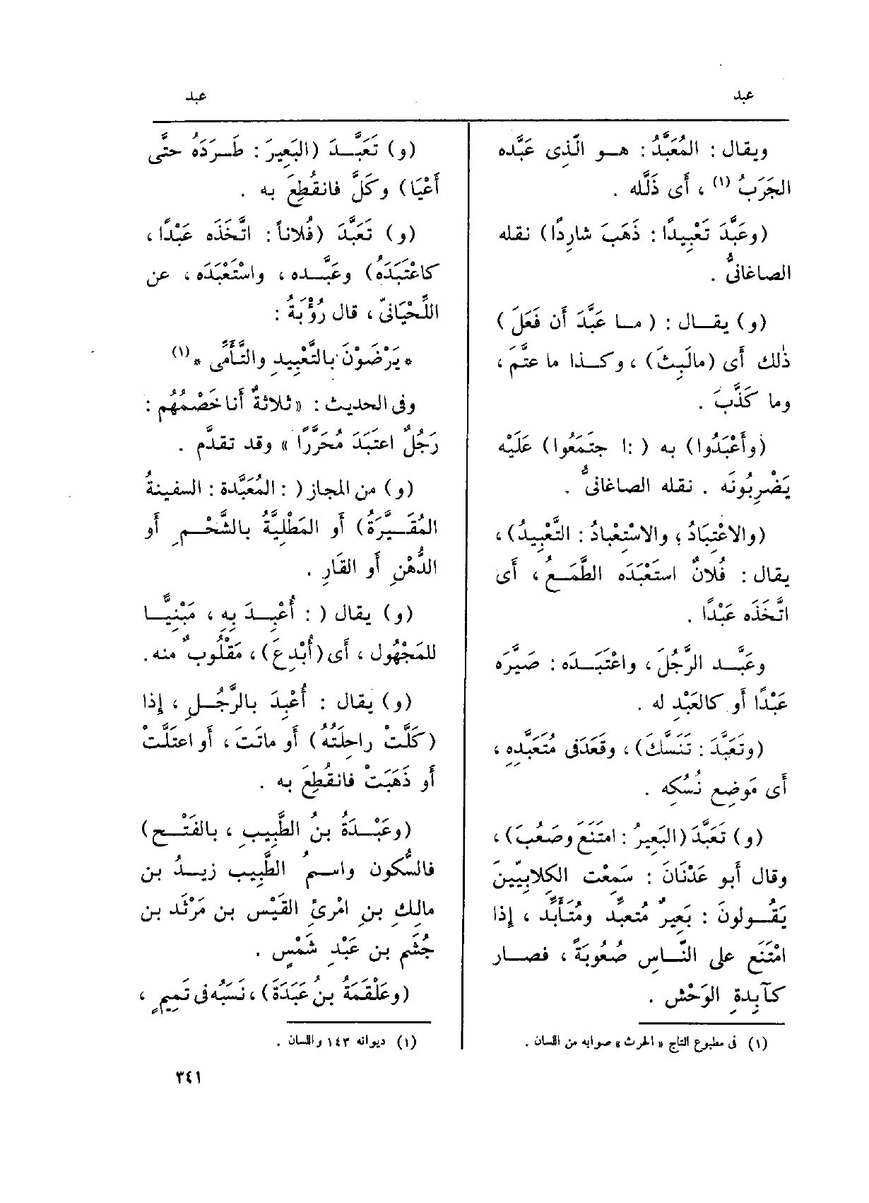 (و) تَعَبَّدَ (البَعِيرَ: طَرَدَهُ حتَّى أَعْيَا) وكَلَّ فانقُطِعَ بِهِ.