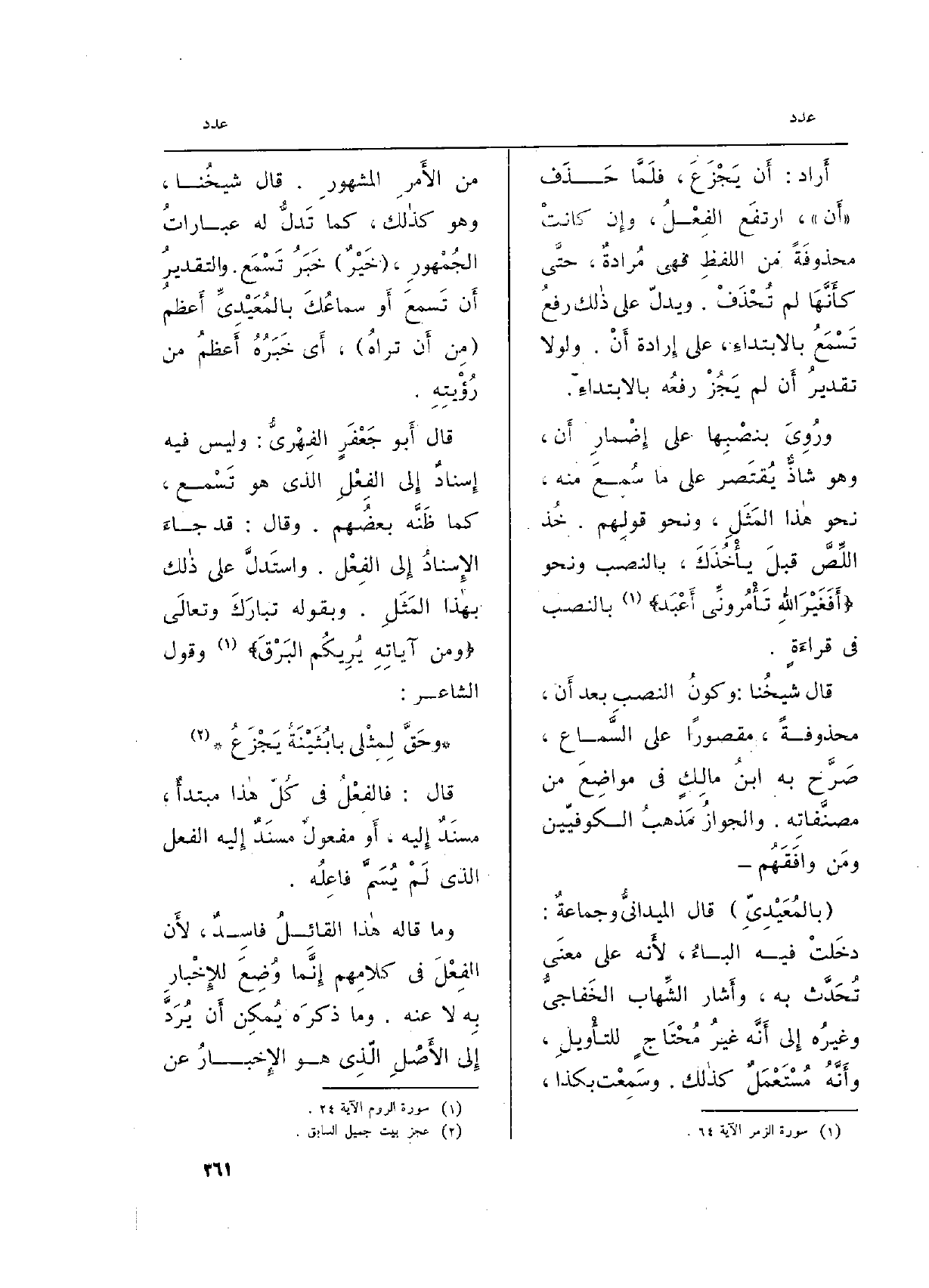قَالَ: فالفِعْلُ فِي كُلُّ هاذا مبتدأٌ، مسنَدٌ إِليه، أَو مفعولٌ مسنَدٌ إِليه، أَو مفعولٌ مسنَدٌ إِليه الْفِعْل الَّذِي لَمْ يُسَمَّ فاعِلُه.