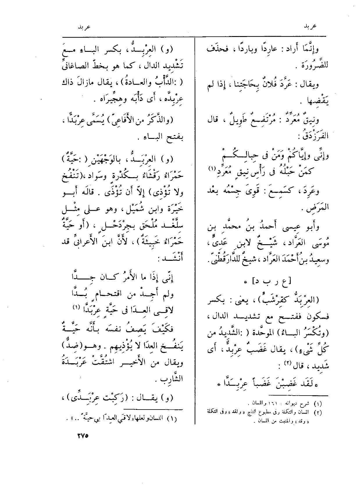 لاقِي العِدَا فِي حَيَّةٍ عِرْبَدَّا