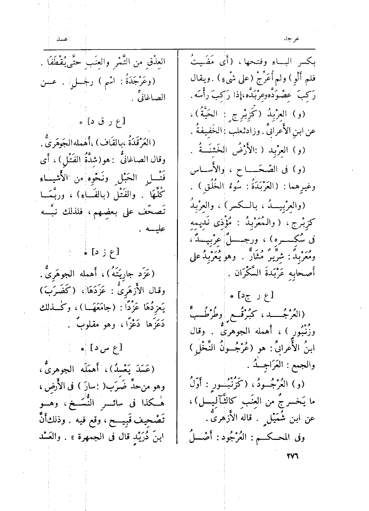 (وعَرْجَدَةُ: اسْم) رجلٍ. عَن الصاغانيِّ.