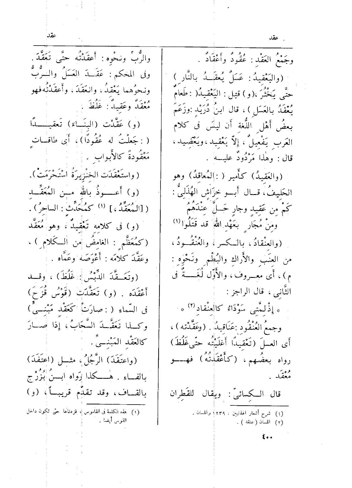 وجمعُ العُنْقُودِ: عناقِيدُ. (وعَقَّدته) ، أَي العسلَ (تَعْقِيداً أَغلَبْتُه حتّى غَلُظَ) رَوَاهُ بعضُهم، (كأَعْقَدتُهُ) فَهُوَ مُعْقَد.