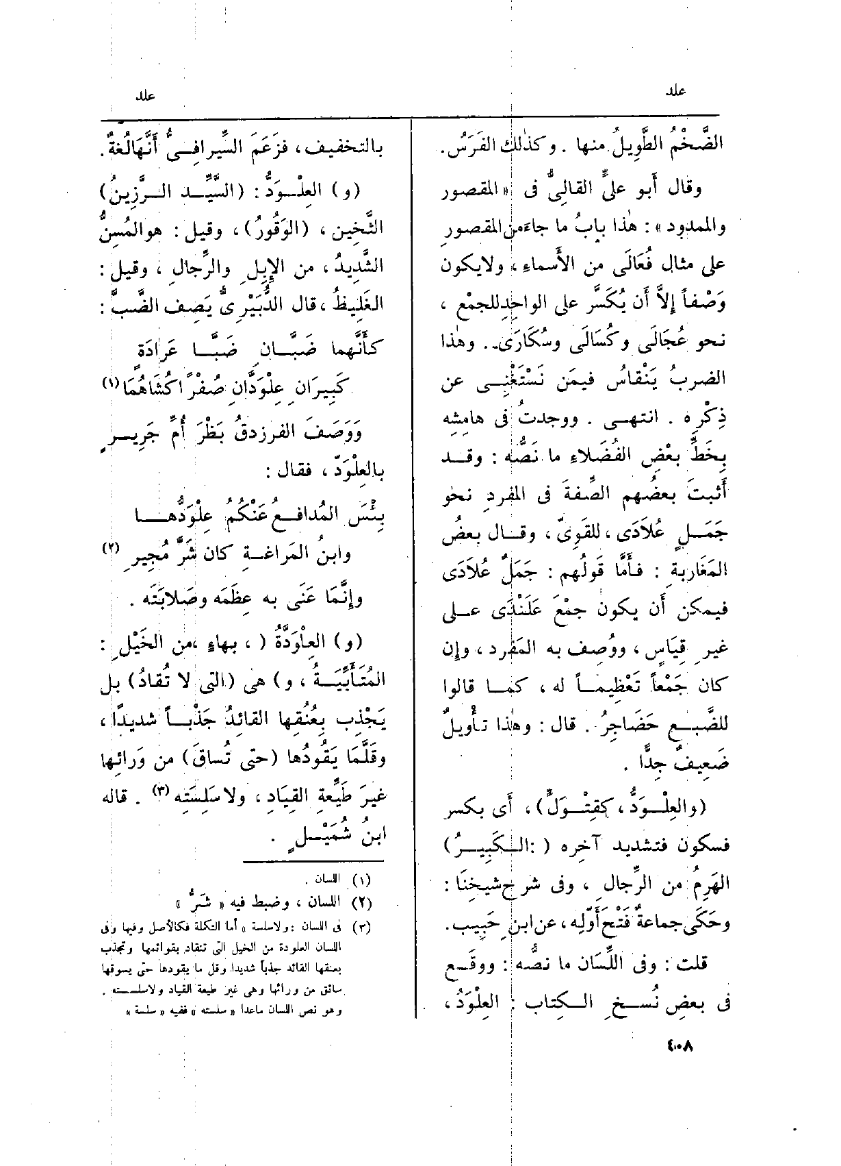قلت: وَفِي اللِّسَان مَا نصُّه: ووقَع فِي بعضِ نُسخِ الكِتاب: العِلْوَدُ، بِالتَّخْفِيفِ، فزَعَمَ السِّيرافِي أَنَّهَا لُغةٌ.