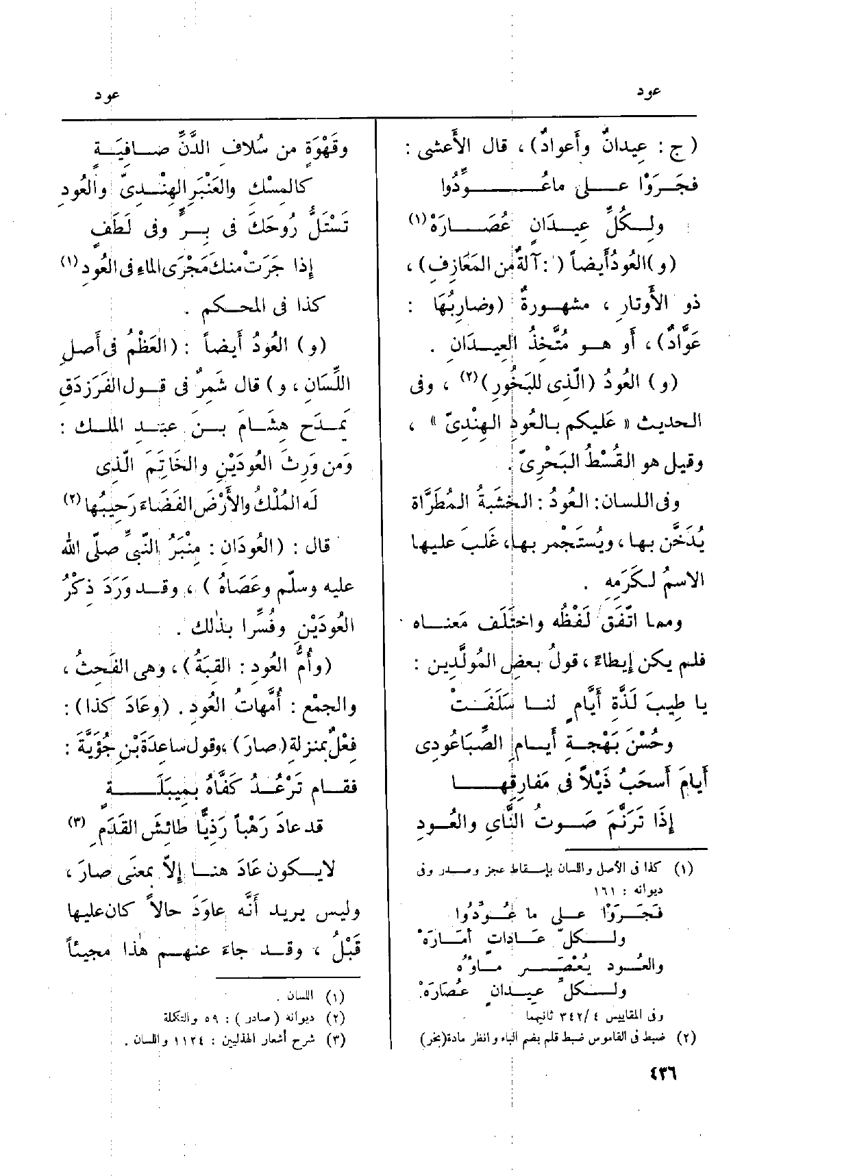 ( {كالعياد) بِالْكَسْرِ، وَقد عَاد إِليه، وَعَلِيهِ،} عودًا {وعِيَاداً،} وأَعَادَه هُوَ، واللهُ يُبْدِىءُ الخَ ثُمَّ يُعيده، من ذالك.