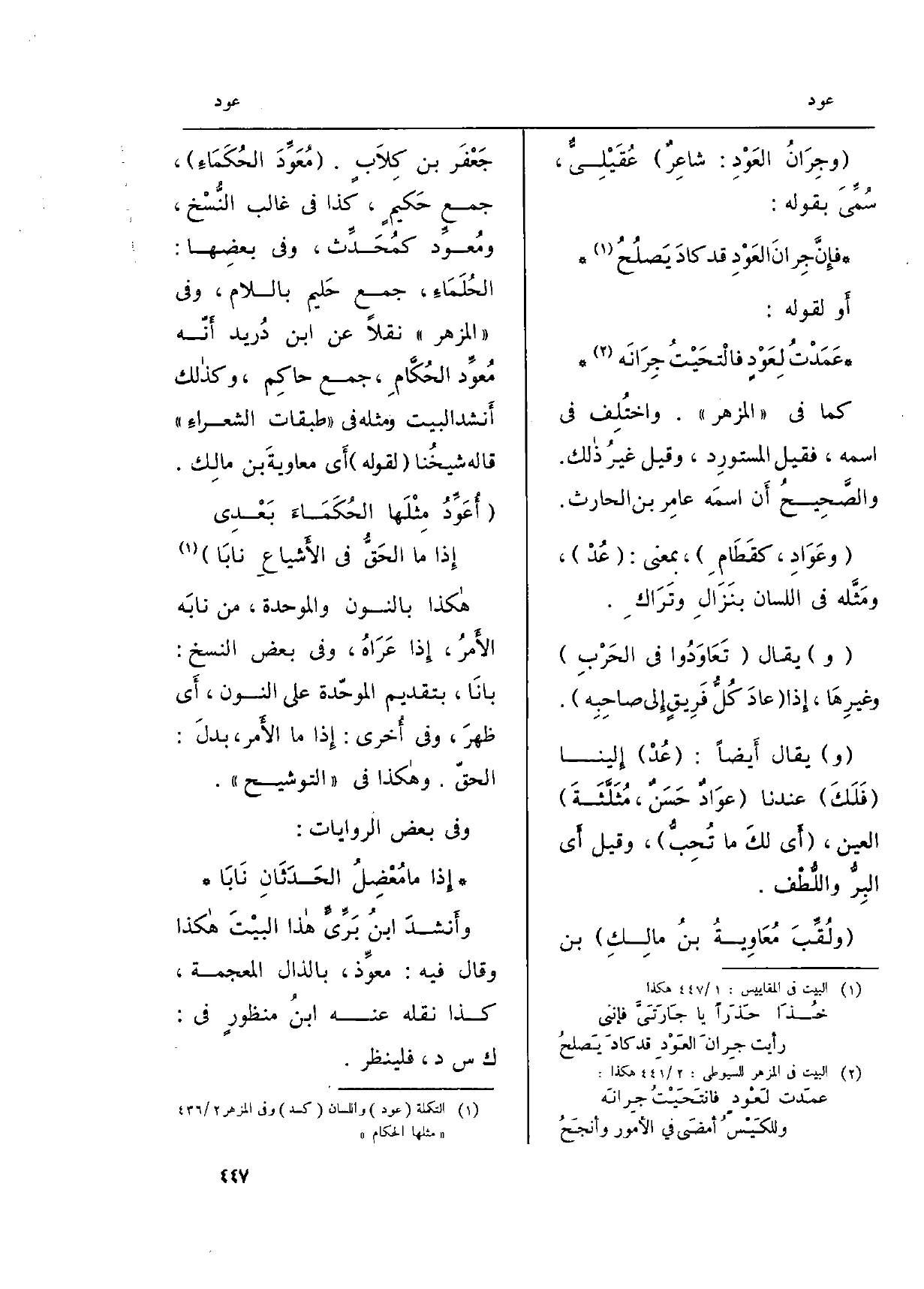 (و) الُعِيدُ: (الأَسَدُ) } لإِعادتِهِ إِلى الفَرِيسَة مرّةً بعدَ أُخْرَى.