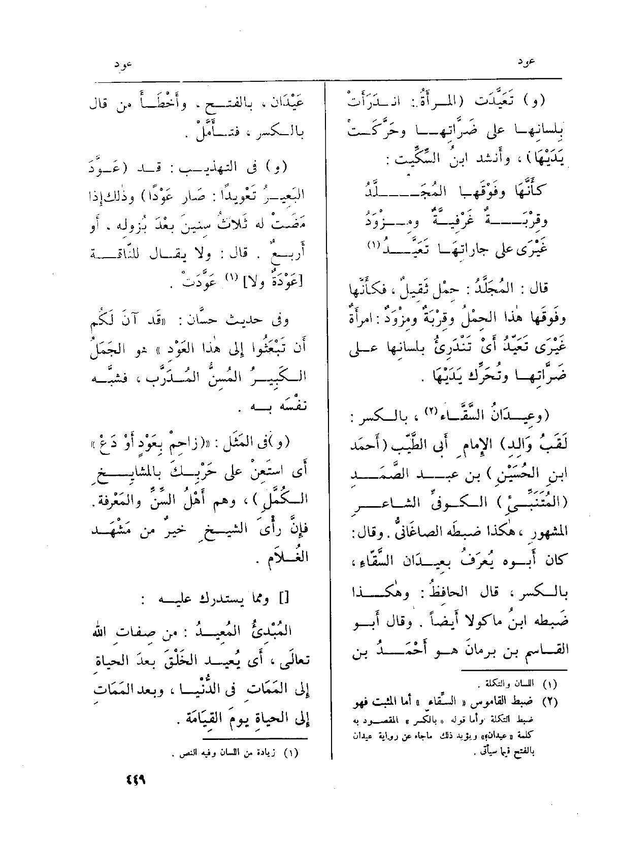 (و) يُقَال أَيضاً: (} عُدْ) إِلينا (فَلَكَ) عندنَا ( {عوَادٌ حَسَنٌ، مُثَلَّث) الْعين، (أَي لكَ مَا تُحِبُّ) ، وَقيل أَي البِرُّ واللُّطْف.