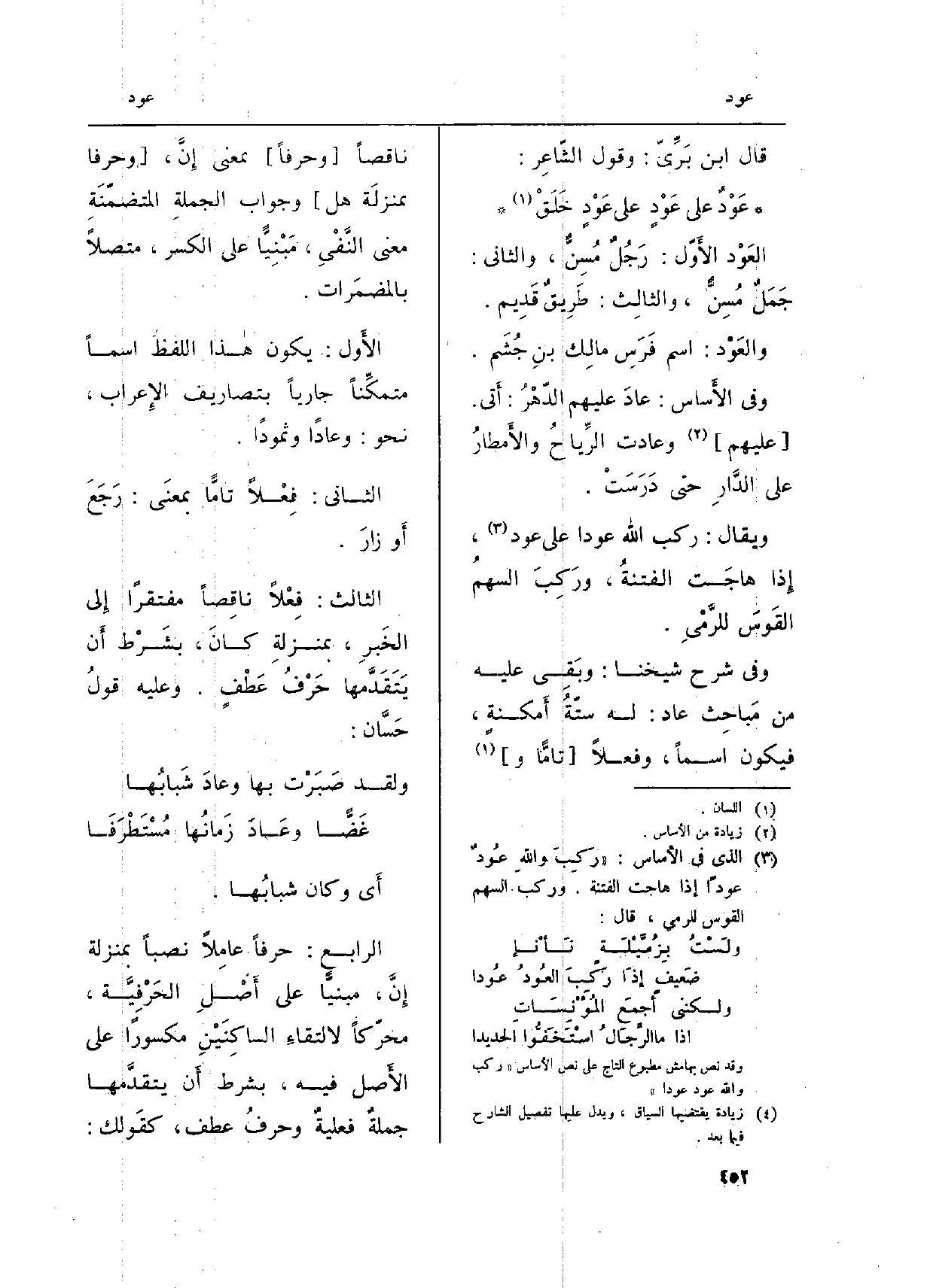 وَيُقَال للطَّرِيقِ الّذِي أَعادَ فِيهِ السّفر وأَبدأَ: مُعِيدٌ، وَمِنْه قولُ ابنِ مُقبلٍ، يصف الإِبلَ السائرة: