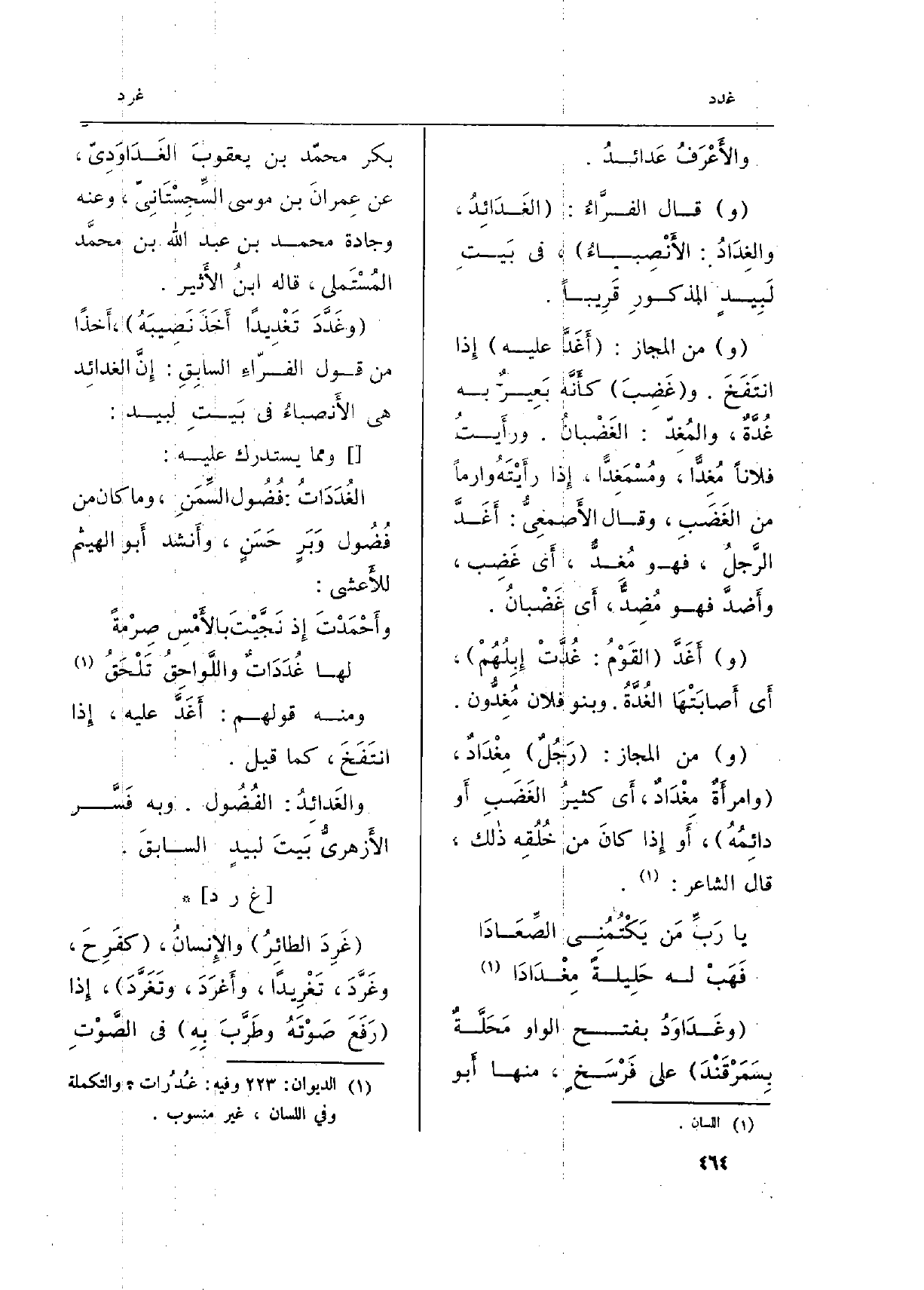 (! والغَدَدُ، محرَّكَةً) ، والغُدَّة بالضّم أَيضاً كَمَا فِي اللِّسَان، والصّحاح، والمصباح، (طاعُونُ الإِبِلِ) ملازمٌ لَهَا، قلَّما تَسْلَمُ مِنه، كَمَا صَرَّح بِهِ بعضُ
