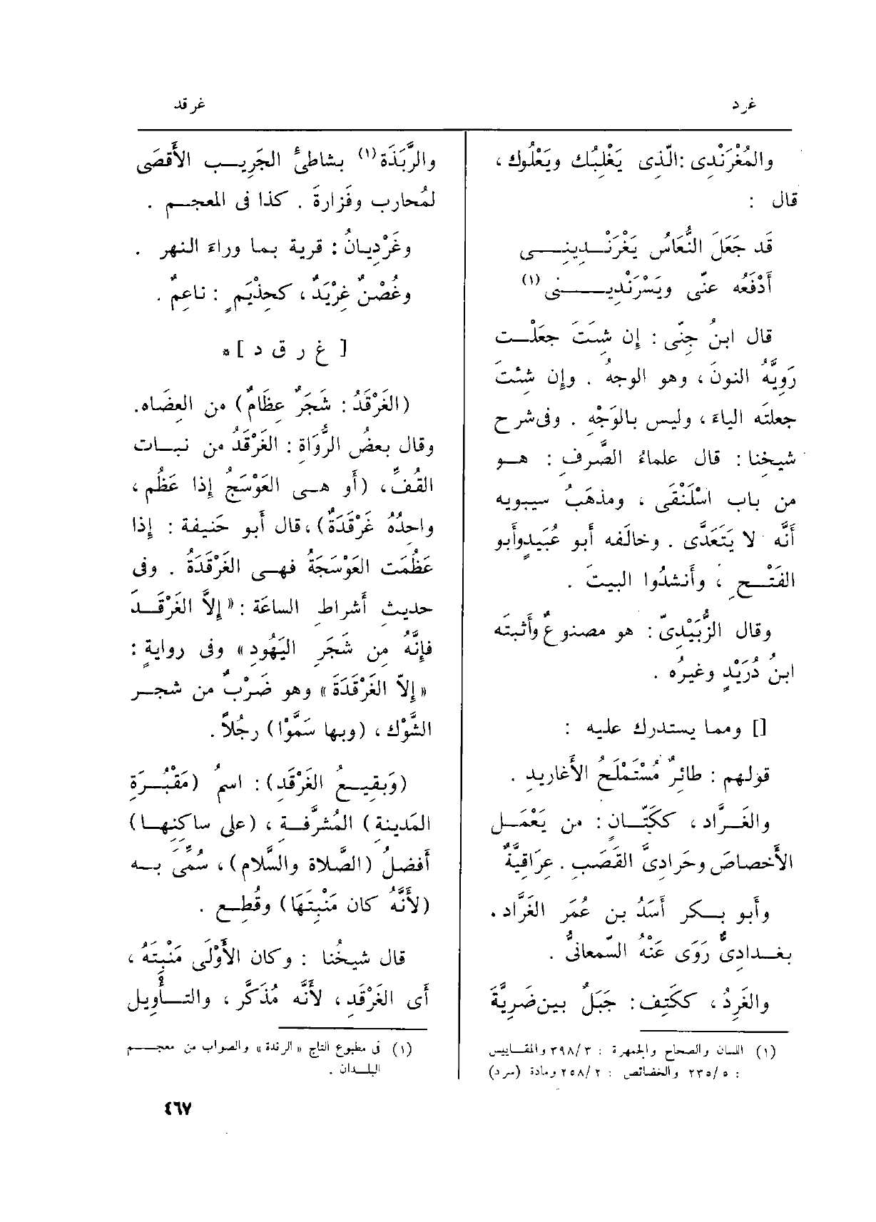(و) الغَرْدُ: (ضَرْبٌ من الكَمْأَةِ) ، قيل: هِيَ الصِّغارُ مِنْهَا. وَقيل: هِيَ الرَّدِيئةُ مِنْهَا، (كالغَرْدَةِ)