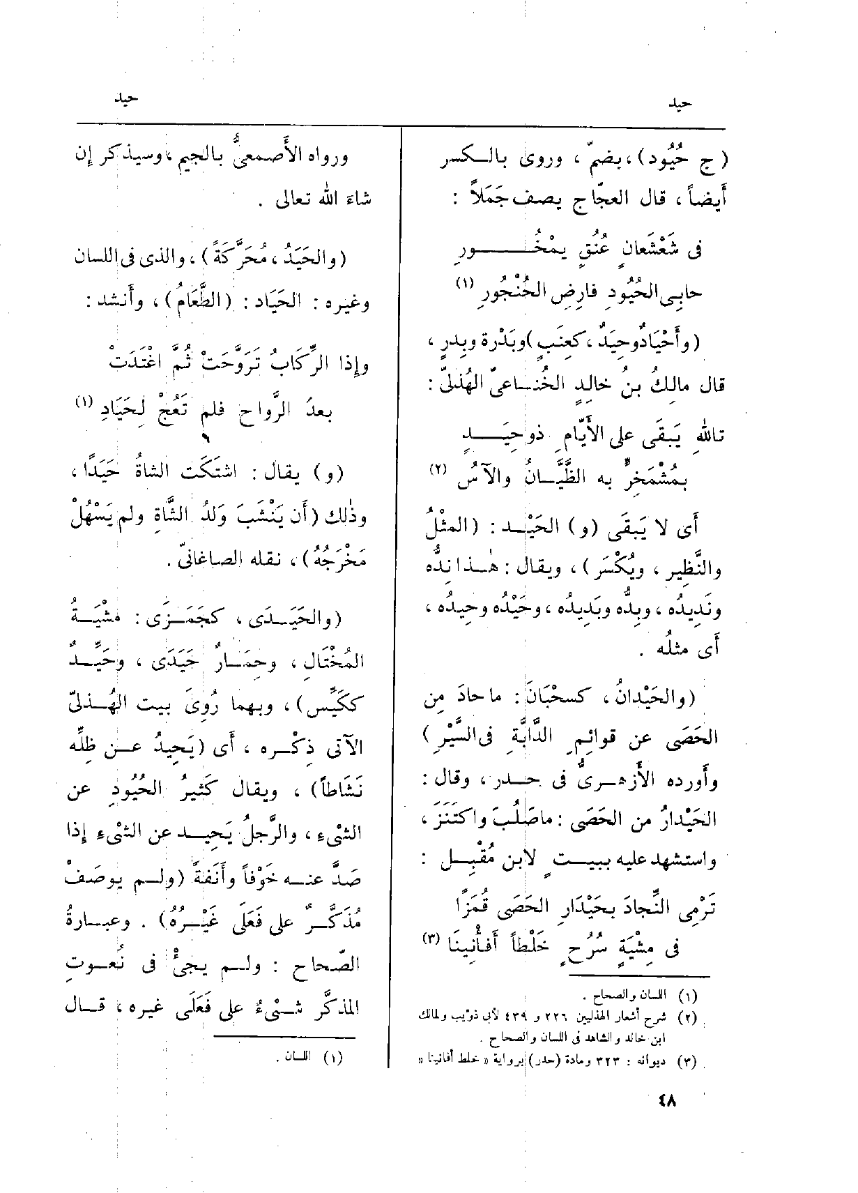 (ج {حُيُود) ، بضمّ وروى بِالْكَسْرِ أَيضاً، قَالَ العجّاج يصف جَمَلاً: