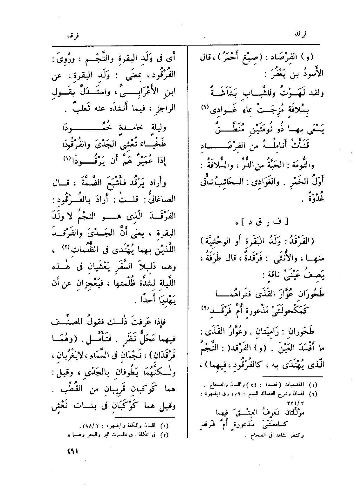 المُفْرَد: ثَوْرُ الوَحْشِ. وَفِي قصيدة كَعْب: