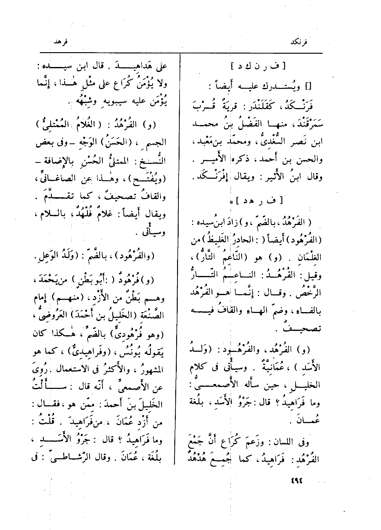 لَقَدْ طَالَ يَا سَوْدَاءُ مِنْكِ المَوَاعِدُ ودُونَ الجَدَا المَأْمولِ مِنْكِ الفَراقِدُ (وفَرْقَدٌ، غيرَ منْسُوبٍ) ، أَكلَ على مائِدةِ النّبيِّ، صلَّى الله عَلَيْهِ وسلّم، آه الحَسَنُ بن مِهْرَانَ، شيخٌ لمحمَّدِ بنِ سلَّامٍ الجُمَحِيّ، فَهُوَ ثُلاثيّ للبخاريّ فِي تَارِيخه، كَذَا فِي تَجْرِيد الذَّهبيِّ. (وعُتْبَةُ بنُ فَرْقَد) بن يَرْبُوعٍ السُّلَمِيّ، أَبو عبد الله، وَلِيَ المَوصِلَ لِعُمَر، وَكَانَ شريفاً، وشَهِدَ خَيْبَرَ، وابتَنَى بالمَوْصِلِ دَارا ومَسْجِداً: (صحابِيَّانِ) .