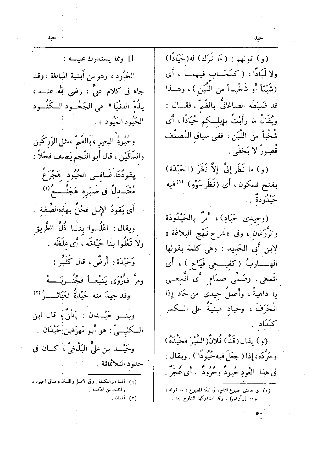 {الحَيُود، وَهُوَ من أَبنية الْمُبَالغَة، وَقد جاءَ فِي كَلَام عليَ، رَضِي الله عَنهُ، يذُمّ الدنْيَا (هِيَ الجَحُود الكَنُود الحَيُود المَيُود) .