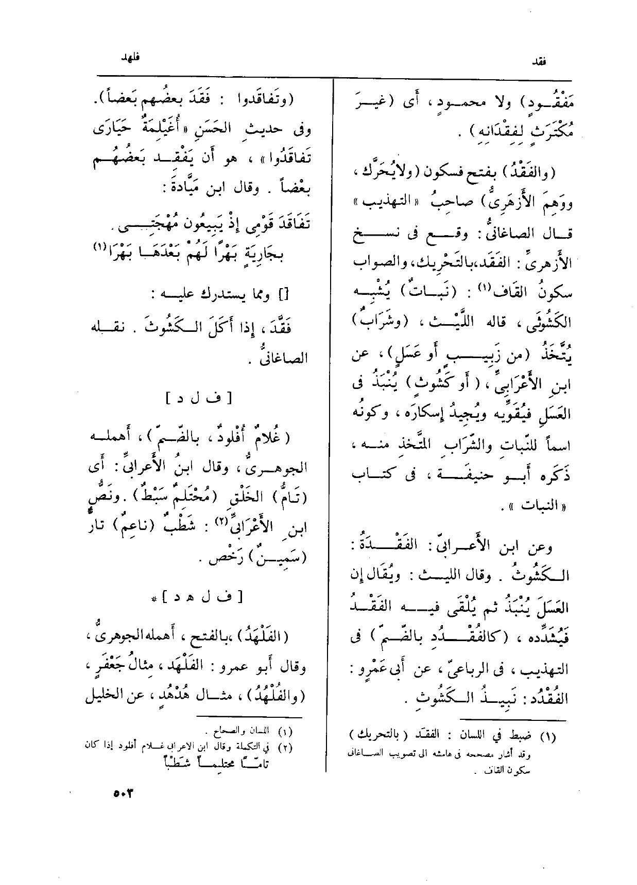وَفِي (المُفْرَدات) للراغب: الفَقْدُ أَخَصُّ من العَدَمِ، لأَنَّ العَدَم بعْدَ لوُجُودِ. أَي فَهُوَ أَعَمُّ، كَمَا قَالَه شيخُنَا. (فَهُوَ فَقِيدٌ ومَفْقُودٌ) ، وعَلى الثانِي اقتَصَر صاحِبُ اللِّسانِ.
