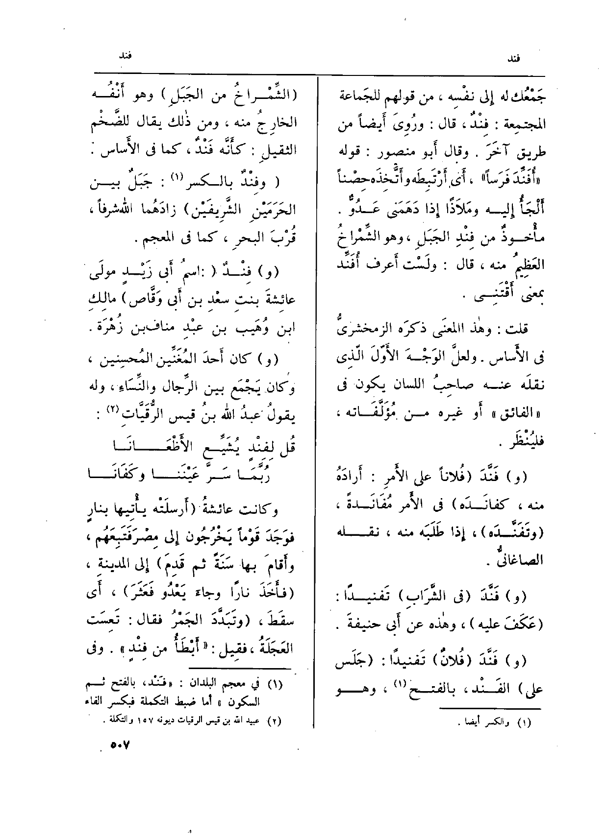 (و) الفَنَدُ (بِالتَّحْرِيكِ: الخَرَف، وإِنكارُ العَقْلِ لِهَرَمٍ أَو مَرَضٍ) ، وَقد يُستعمَل فِي غير الكِبَرِ، وأَصْلُه فِي الكِبَرِ. (و) الفَنَدُ: (الخَطَأُ فِي القولِ والرَّأْيِ، و) الفَنَد: (الكَذِبُ، كالإِفْنَادِ) . وَقَول الشاعِر: