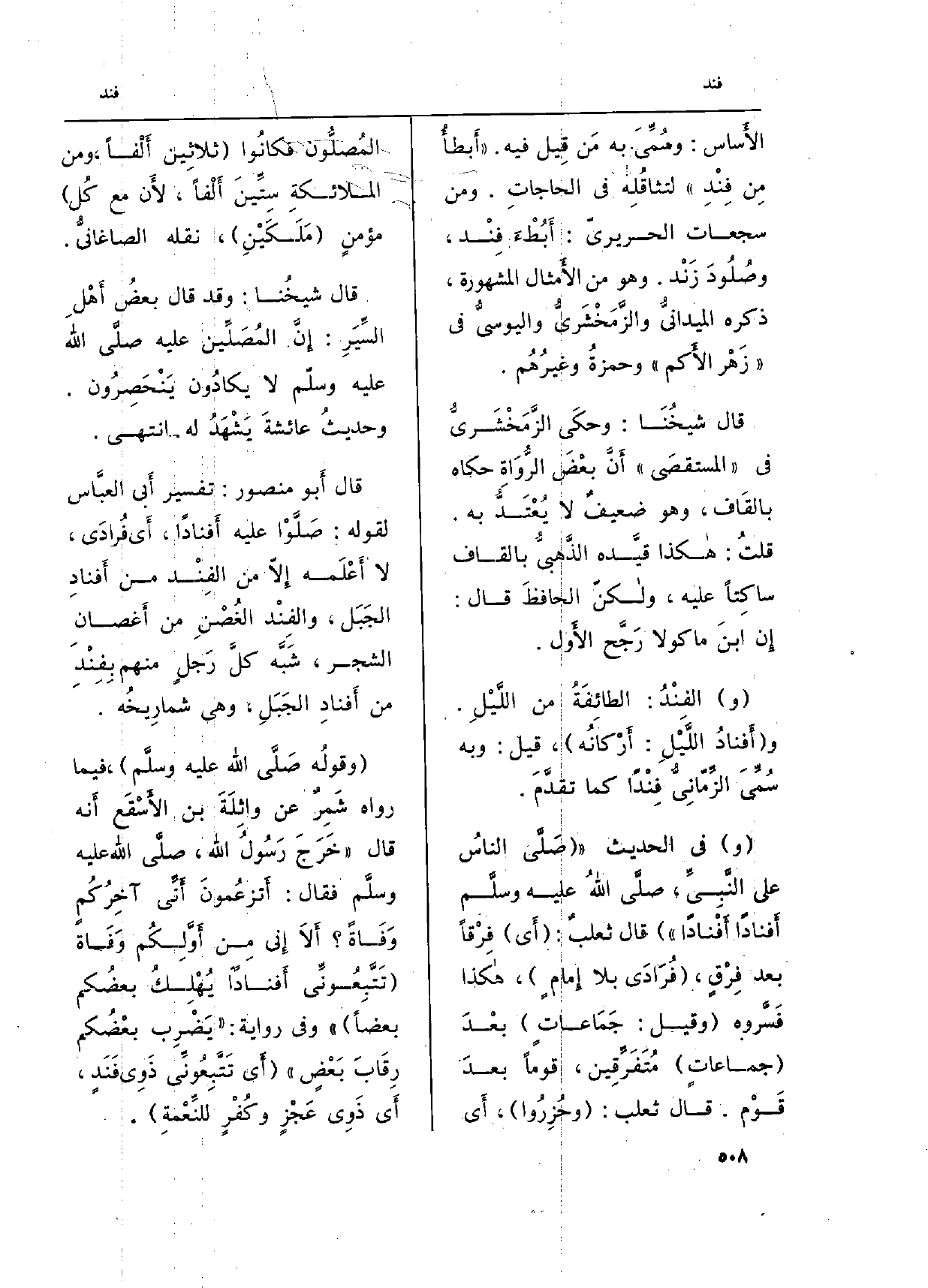وَقَالَ الأَصمعيّ: إِذا كَثُر كلامُ الرجلِ من خَرَفٍ فَهُوَ المُفْنِد والمُفْنَد وَفِي الحَدِيث: (مَا يَنتظِر أَحدُكم إِلا هَرَماً مُفْنِداً أَو مَرَضاً مُفْسِداً) وأَفْنده الكِبَرُ: أَوقَعَه فِي الفَنَدِ. وَفِي حَدِيث أُمِّ مَعْبَد: (لَا عابِسٌ وَلَا مُفْنَدٌ) ، وَهُوَ الَّذِي لَا فائدةَ فِي كَلَامه لِكِبَرٍ، أَصابَه. فَهِيَ تَصِفُه صلَّى الله عَلَيْهِ وسلّم وَتقول: لم يَكُن كذالك. وَفِي الأَساس: وفُلان مُفَنْدٌ ومُفَنَّدٌ، إِذا أُنكِرَ عَقْلُه لَهُ 2 رَمٍ أَو خَلَّطَ فِي كَلَامه، وأَفنَدَه الهَرَمُ: جعَلَه فِي قِلَّة فَهْمٍ كالحَجَرِ. قَالَ شيخُنَا: ثمَّ تَوسَّعُوا فِيهِ فَقَالُوا: فَنَّدَه إِذا ضَعَّفَ رأْيَه ولَامَهُ على مَا فَعَلَ. كَذَا فِي (الكَشَّاف) .