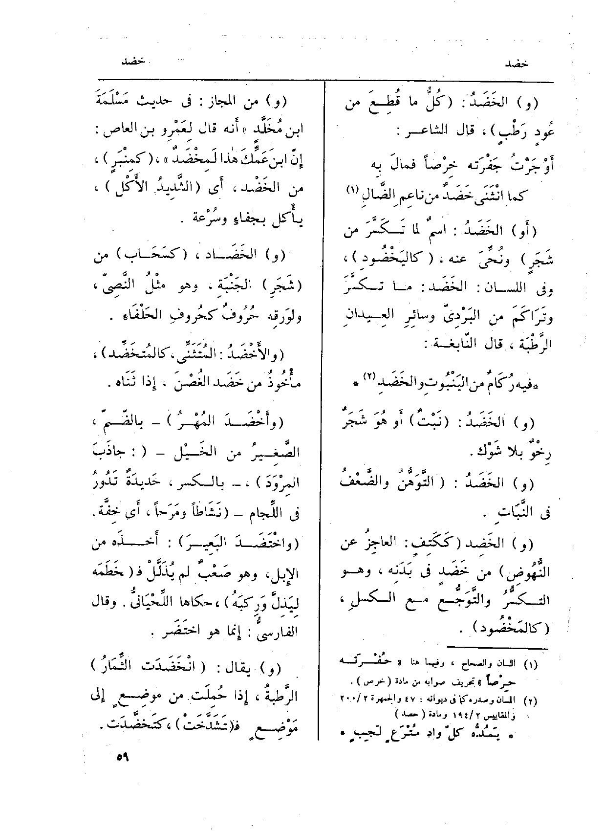 (و) الخَضَدُ: (التَّوَهُّنُ والضَّعْفُ فِي النَّبَاتِ.