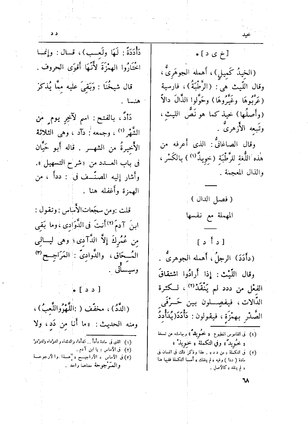 (فصل الدَّال) الْمُهْملَة مَعَ نَفسهَا)