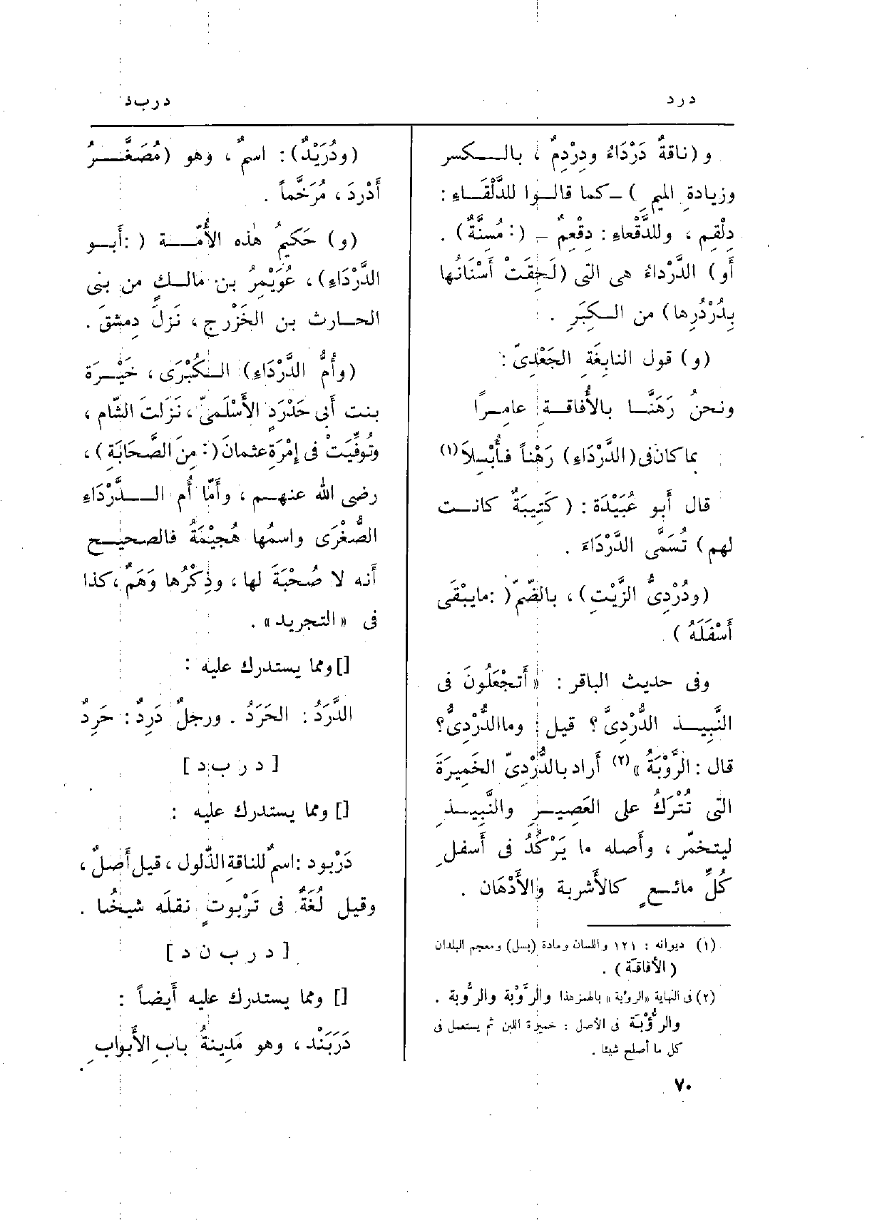 : (دَرْبود: اسمٌ للناقةِ الذّلول، قيل أَصلٌ، وَقيل لُغَةٌ فِي تَرْبوتٍ نقلَه شيخُنا.