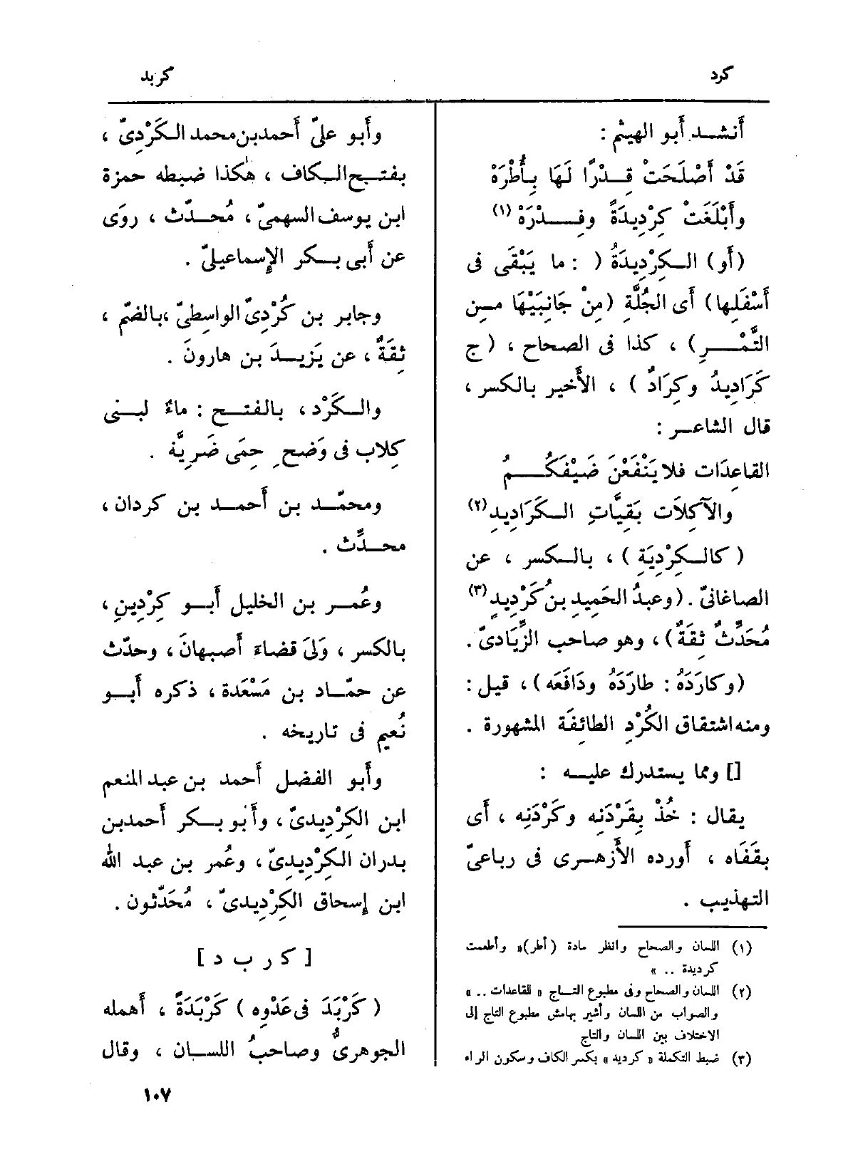 (وكارَدَهُ: طارَدَهُ ودَافَعَه) ، قيل: وَمِنْه اشتقاق الكُرْدِ الطائفَة الْمَشْهُورَة.