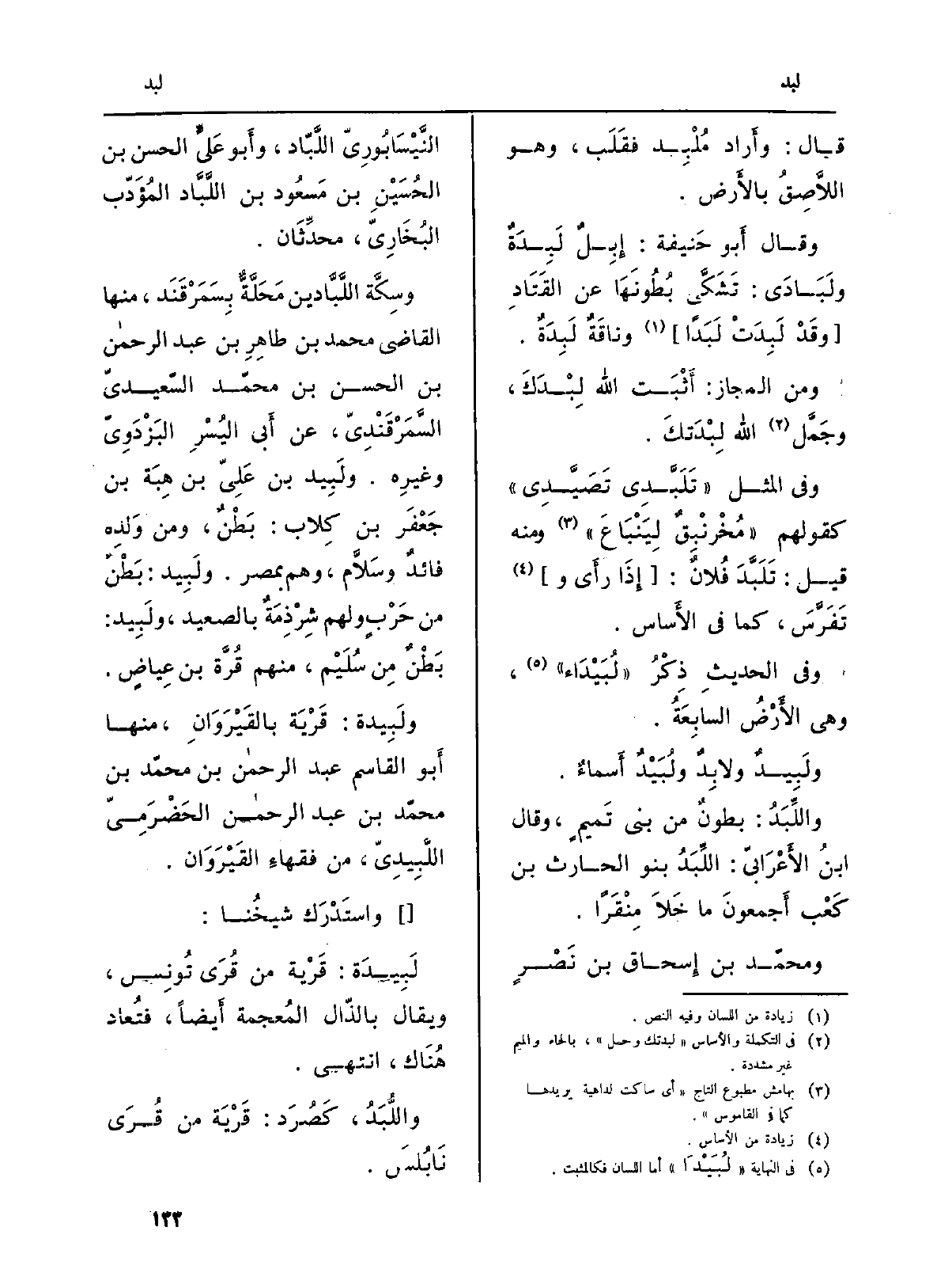 وسِكَّة اللَّبَّادين مَحَلَّةٌ بِسَمَرْقَنَد، مِنْهَا القَاضِي مُحَمَّد بن طَاهِر بن عبد الرَّحْمَن بن الْحسن بن محمّد السّعيدءَ السَّمَرْقَنْدِيّ، عَن أَبي اليخسْرِ البَزْدَوَيّ وغيرِه. ولَبِيد بن عَلِيّ بن هَبَة بن جَعْفَر بن كِلاب: بَطْنٌ، وَمن وَلدِه فائدٌ وسَلاَّم، وهم بِمصْر. ولَبِيد: بَطْن من حَرْبٍ وَلَهُم شِرْذَمَةٌ بالصعيد، ولَبِيد: بَطْنٌ مِن سُلَيْم، مِنْهُم قُرَّة بن عِياضٍ.