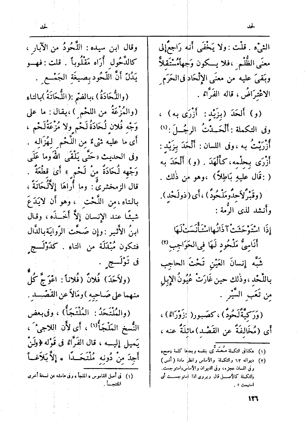 (ولاَحَدَ) فُلانٌ (فُلاناً: اعْوَجَّ كُلٌّ مِنْهُمَا على صَاحِبِهِ) ومَالاَ عَن القَصْدِ.