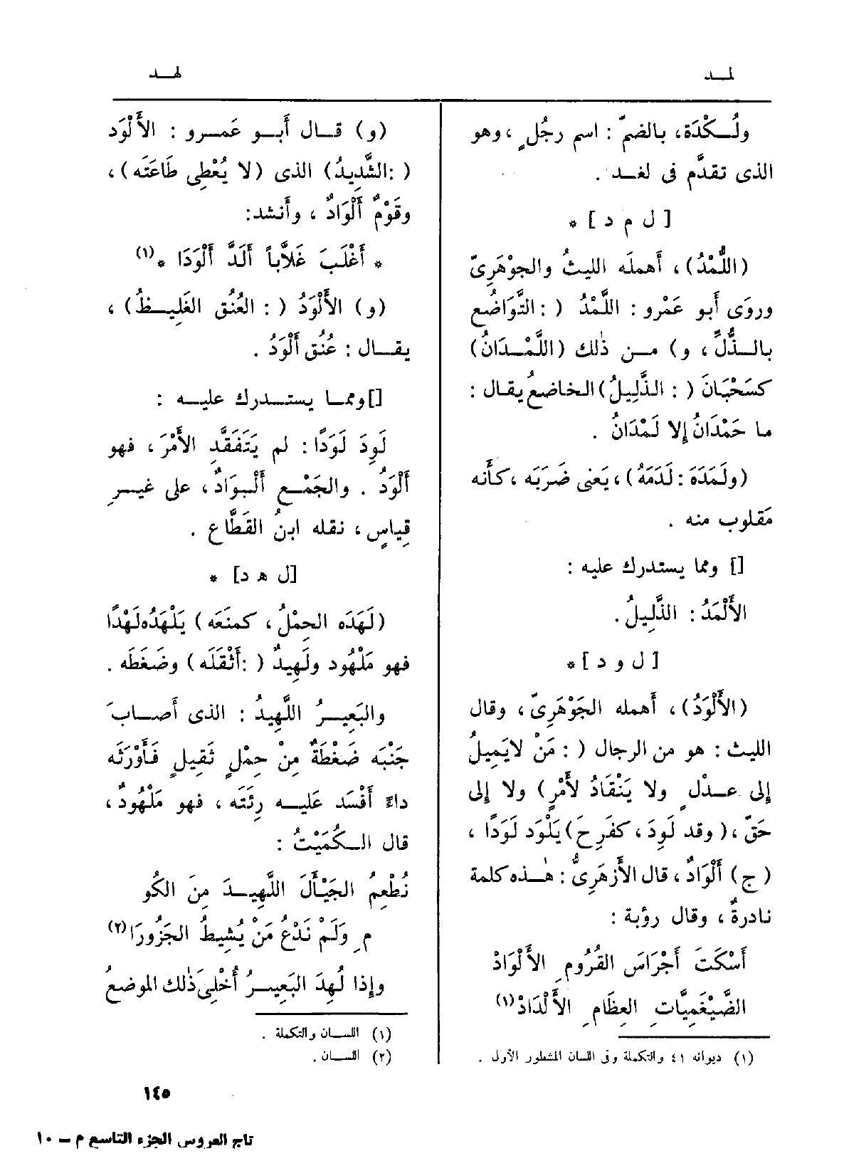: (اللُّمْدُ) ، أَهملَه الليثُ والجوْهَرِيّ وروَى أَبو عَمْرو: اللَّمْدُ (: التَّوَاضُعه بالذُّلِّ، و) من ذالك (اللَّمْدَانُ) كسَحْبَان (: الذَّلِيلُ) الخاضعُ يُقَال: مَا حَمْدَانُ إِلا لَمْدَانُ.
