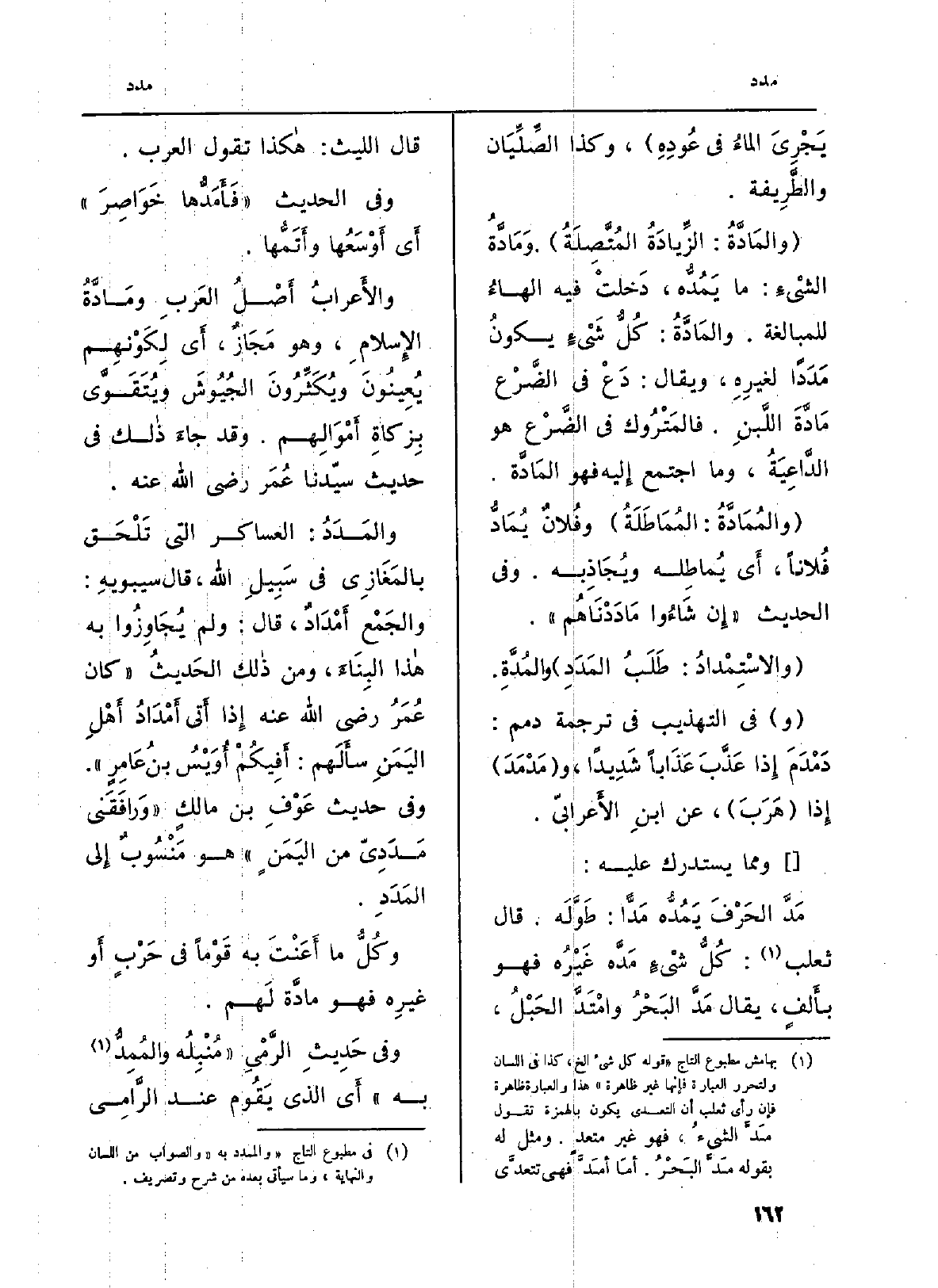 وكُلُّ مَا أَعَنْتَ بِهِ قَوْماً فِي حَرْبٍ أَو غيرِه فَهُوَ مادَّة لَهم.