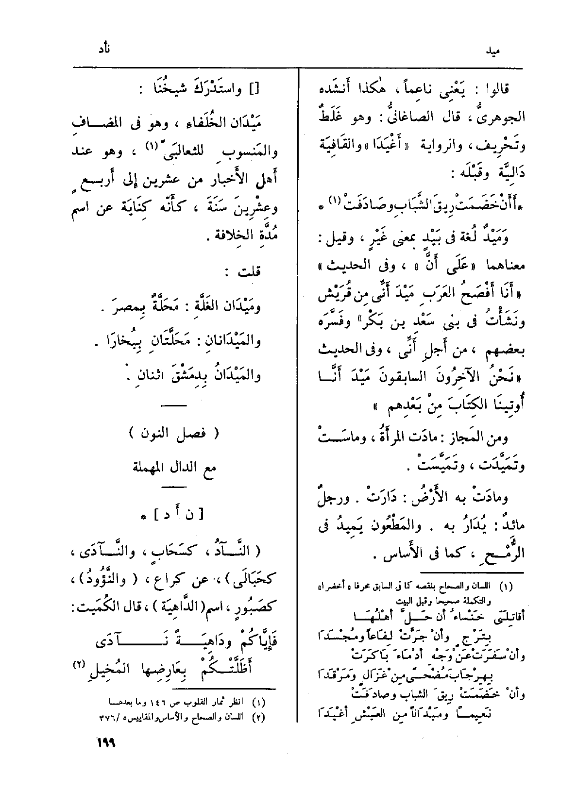 : (} النَّآدُ، كَسَحَابٍ، {والنَّآدَى، كحَبَالَى) ، عَن كرَاع، (} والنَّؤُودُ) ، كصَبُورٍ، اسْم (الدَّاهِيَة) ، قَالَ الكُمَيت: