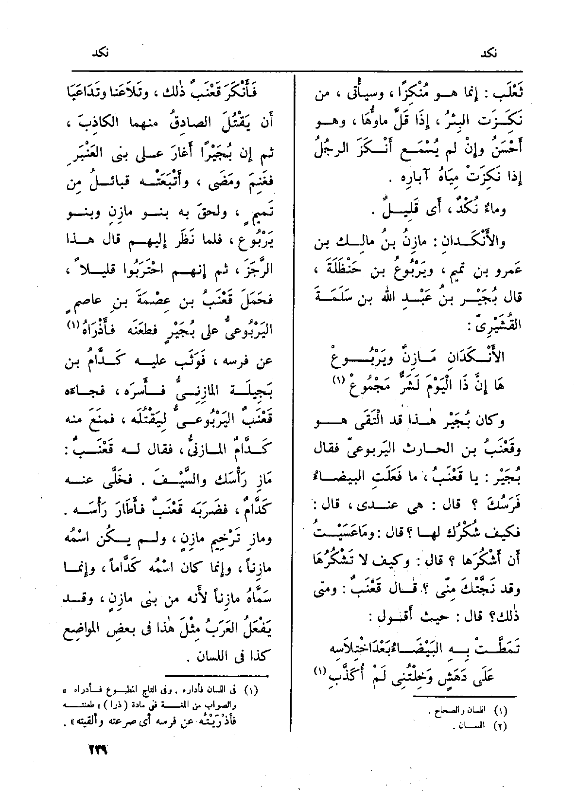 والأَنْكَدانِ: مازِنُ بنُ مالِك بن عَمرو بن تَمِيم، ويَرْبُوعُ بن حَنْظَلَةَ، قَالَ بُجَيْر بن عَبْدِ الله بن سَلَمَةَ القُشَيْرِيّ: